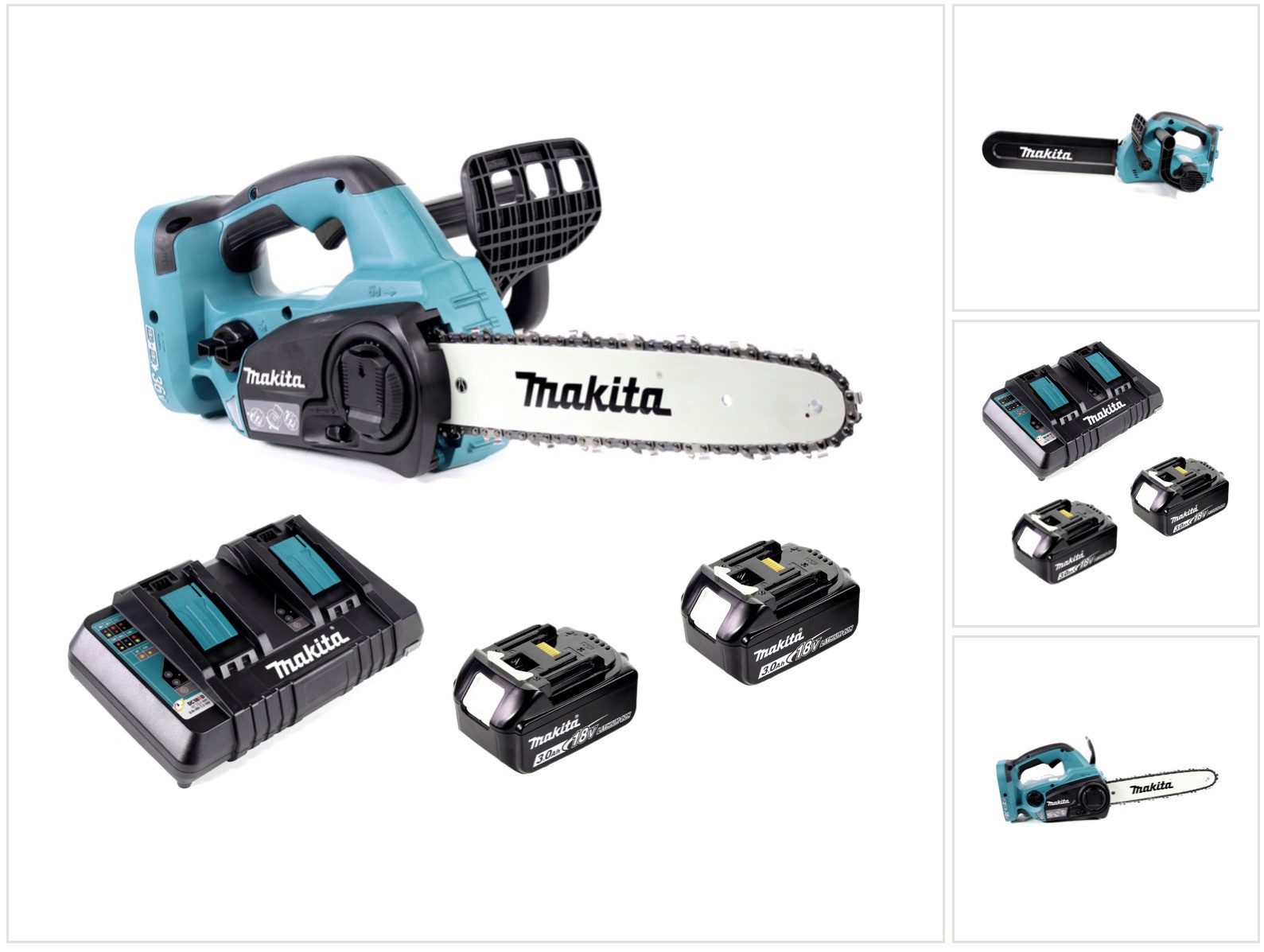 Mit der Makita DUC 302 Z Akku Kettensäge erwerben Sie eine kraftvolles, mit 36 V betriebenes Werkzeug, welches zudem sehr umweltfreundlich und kostensparend arbeitet. Bestückt wird die DUC 302 mit 2 mal 18 V Lithium Ionen Akku, die Konstruktion und die Leistung bei diesem Gerät sind äußerst bemerkenswert. Die Kettensäge eignet sich perfekt für den Einsatz an geräuschempfindlichen Orten, wie im Umfeld von Seniorenheimen, Krankenhäusern oder gar Ferienanlagen. Natürlich kommt die Leistung und die Sicherheit da nicht zu kurz, denn die Makita DUC 302 verfügt über eine hohe Kettengeschwindigkeit von 8,3 m/s für rasche Schnitte, dazu ist auch eine elektrische Motorbremse und ein Rückschlagschutz verbaut. Wie bei vielen Kettensäge üblich, wird auch bei der Makita DUC 302 die Kette automatisch geschmiert, die Kette werkzeuglos gewechselt und die Spannung der Kette reibungslos gespannt. Der verbaute Softgriff sowie die Ladestandsanzeige sorgen für mehr Komfort bei der Arbeit.