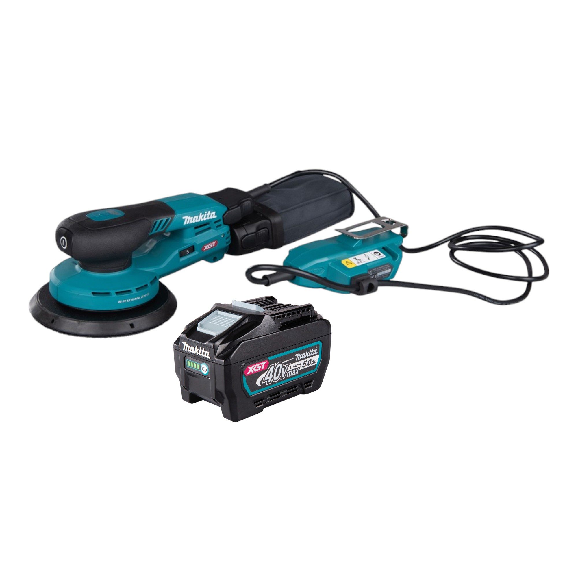 Der Makita BO002CG ist ein äußerst handlicher und leichter Exzenterschleifer, der sowohl mit einem 40V max. Akku als auch über einen PDC-Connector-Akku betrieben werden kann. Durch den separat über ein Adapterkabel angeschlossenen Akku, der beispielsweise am Gürtel getragen werden kann, bleibt das Gerät besonders leicht und handlich. Dies erleichtert die Handhabung erheblich. Eine hervorragende Staubabsaugung wird durch die Grundplatte ermöglicht, die den Staub direkt in die integrierte Staubbox oder über eine externe Absaugung befördert, wobei letztere über das Auto-Start Wireless System (AWS) mit Bluetooth mit einem Staubsauger verbunden werden kann. Der bürstenlose Motor des Schleifers ist wartungsfrei und zeichnet sich durch seine Langlebigkeit aus. Zudem sorgt die Konstantelektronik für eine gleichbleibende Drehzahl, die ein gleichmäßiges Schleifergebnis über verschiedene Materialien hinweg gewährleistet. Die regelbare Dreh- und Exzenterbewegung trägt zusätzlich dazu bei, perfekte Ergebnisse zu erzielen.