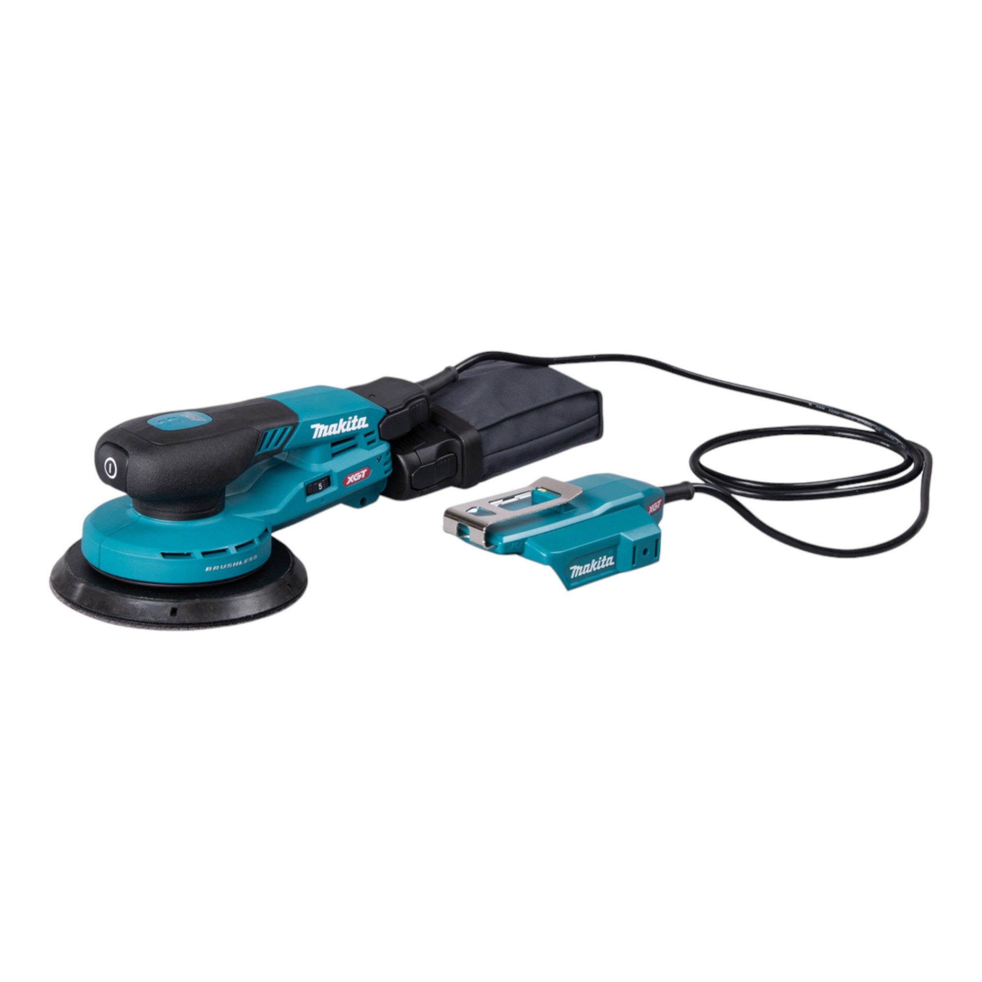 Der Makita BO004CG Exzenterschleifer zeichnet sich durch seine kompakte Bauweise und das geringe Gewicht aus, was ihn besonders handlich macht. Dies wird durch die separate Stromversorgung ermöglicht, bei der der Akku über ein Adapterkabel angeschlossen wird und beispielsweise am Gürtel getragen werden kann. Eine optionale Stromversorgung ist durch den Einsatz einer 40V max. Akku oder einer PDC-Akku-Bank möglich. Eine effiziente Staubabsaugung ist durch die Grundplatte gewährleistet, welche Staub direkt in eine integrierte Staubbox leitet oder eine externe Absaugung ermöglicht. Letztere kann über das Auto-Start Wireless System (AWS) gesteuert werden, welches sich mittels Bluetooth mit einem Staubsauger verbindet. Der Exzenterschleifer ist mit einem bürstenlosen Motor ausgestattet, der nicht nur wartungsfrei und langlebig ist, sondern auch durch die Konstantelektronik eine gleichbleibende Drehzahl garantiert. Dadurch wird ein gleichmäßiges Schleifergebnis über alle Materialien hinweg sichergestellt. Die regelbare Dreh- und Exzenterbewegung trägt zusätzlich zur Flexibilität und hohen Effizienz bei der Arbeit bei.