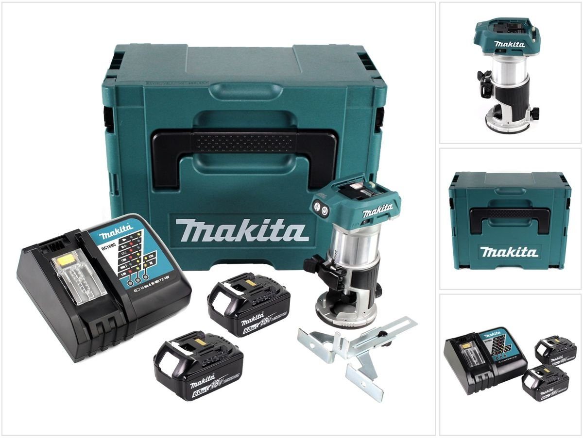 Dank des mitgelieferten Kantenfräsenmodul eignet sie sich ideal zum Bündigfräsen und Profildrehen von Holz, Kunststoff und ähnlichen Materialien. Die Makita DRT 50 ist eine kompakte und handliche Multifunktionsfräse. Das Gerät überzeugt durch seine Soft-Start-Funktion, welche ein kontrolliertes Starten ermöglicht, sowie seine variablen Geschwindigkeitsstufen, welche über einen Drehregler eingestellt werden können. Der bürstenlose Motor sorgt für eine effizientere Nutzung der Akkukapazität und erhöht die Laufzeit und Haltbarkeit des Geräts. Die Fräse enthält einen Staubsaugeranschluss zum anhängen eines Staubsaugers. Mit dem 6,0 Ah Akku bekommt die 18 Volt Klasse noch mehr Akku-Kapazität bei gewohnt kurzer Ladezeit. Neben mehr Ausdauer wird der Akku serienmäßig mit der praktischen Kapazitätsanzeige geliefert. Das Ladegerät lädt die Akkus in extrem kurzer Ladezeit schonend aber effektiv wieder für den nächsten Einsatz auf. Der aus doppelwandigen Eckprofilen und verstärkten Deckel-, Seiten- und Bodenflächen bestehende Koffer schützt Maschinen und Zubehör zuverlässig.