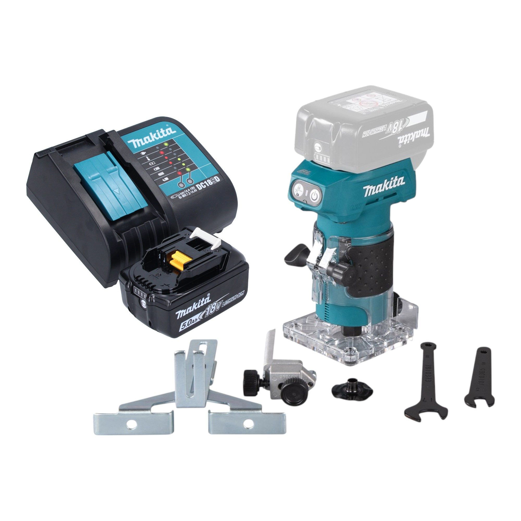 Die Makita DRT52 Akku-Kantenfräse ist eine leichte, bürstenlose Fräse, die sich ideal für Tischler und Hobbyhandwerker eignet. Mit dieser 18 V Akku-Kantenfräse können Nuten und Verzierungen präzise in Holz eingefräst werden. Sie kommt mit einer 6-mm-Spannzange und einer praktischen Führungsschiene. Dank der großen Auswahl an verfügbaren Fräser-Einsätzen lässt sich das Werkzeug vielseitig einsetzen. Die DRT52 ist mit einem bürstenlosen Motor ausgestattet, der für eine höhere Effizienz und eine längere Lebensdauer sorgt. Ein weiteres praktisches Merkmal ist das LED-Arbeitslicht, das eine bessere Sicht auf den Arbeitsbereich ermöglicht, insbesondere in dunkleren Umgebungen. Zudem sorgt die Soft-Start-Funktion für einen sanften Anlauf der Fräse und minimiert so die Gefahr eines ruckartigen Starts. Das robuste Kunststoffgehäuse macht die Kantenfräse besonders widerstandsfähig und prädestiniert sie für den Einsatz bei Tischlerarbeiten. Mit der XPT-Technologie bietet die DRT52 optimalen Schutz gegen Staub und Spritzwasser – auch unter schwierigen Bedingungen. Für zusätzliche Sicherheit sorgt die Sperr-/Entriegelungstaste, die das unbeabsichtigte Einschalten der Fräse verhindert und so das Risiko von Unfällen minimiert. Zusammengefasst bietet die Makita DRT52 eine hervorragende Kombination aus Leistung, Sicherheit und Vielseitigkeit – perfekt für professionelle Tischler und engagierte Heimwerker.