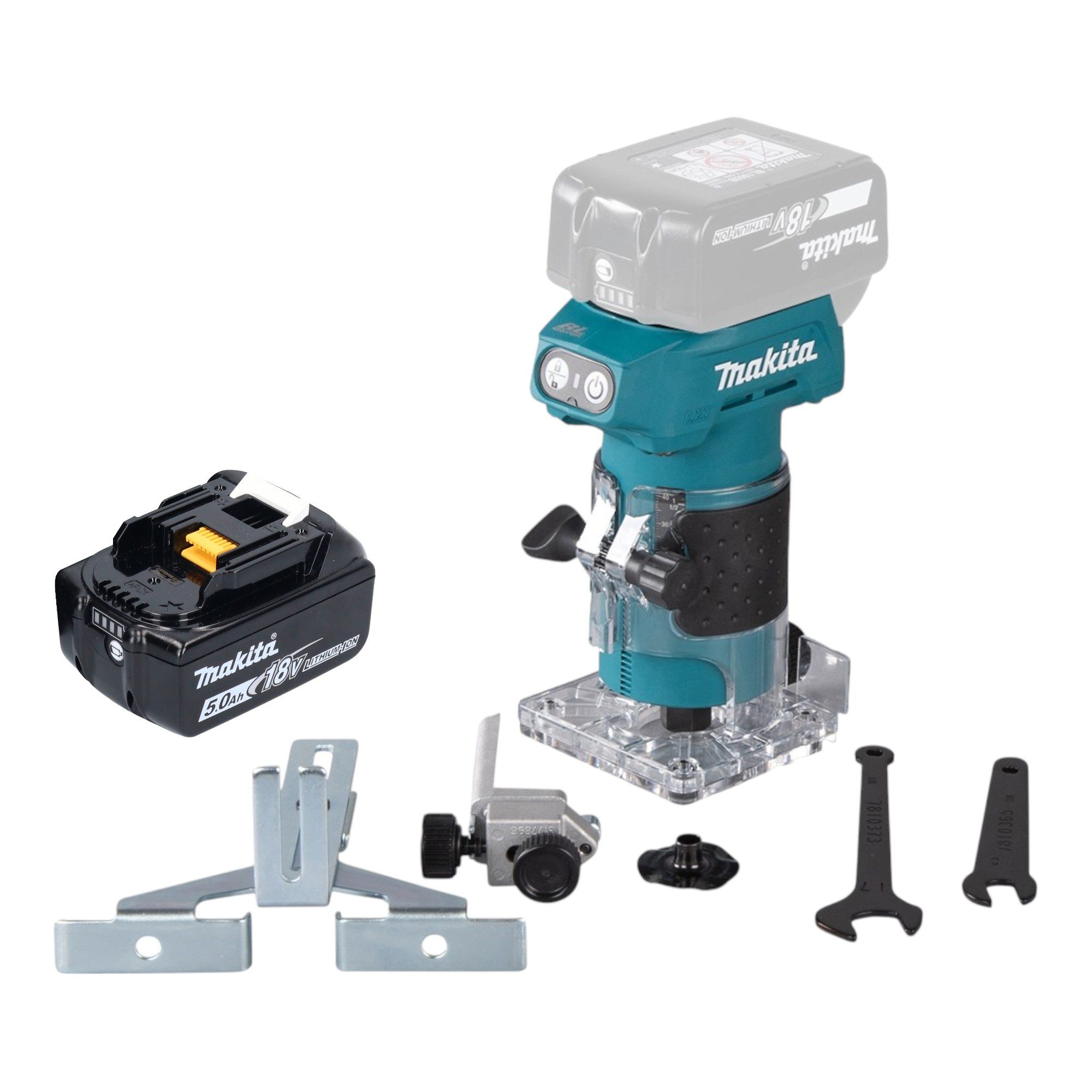 Die Makita DRT52 Akku-Kantenfräse ist eine leichte, bürstenlose Fräse, die sich ideal für Tischler und Hobbyhandwerker eignet. Mit dieser 18 V Akku-Kantenfräse können Nuten und Verzierungen präzise in Holz eingefräst werden. Sie kommt mit einer 6-mm-Spannzange und einer praktischen Führungsschiene. Dank der großen Auswahl an verfügbaren Fräser-Einsätzen lässt sich das Werkzeug vielseitig einsetzen. Die DRT52 ist mit einem bürstenlosen Motor ausgestattet, der für eine höhere Effizienz und eine längere Lebensdauer sorgt. Ein weiteres praktisches Merkmal ist das LED-Arbeitslicht, das eine bessere Sicht auf den Arbeitsbereich ermöglicht, insbesondere in dunkleren Umgebungen. Zudem sorgt die Soft-Start-Funktion für einen sanften Anlauf der Fräse und minimiert so die Gefahr eines ruckartigen Starts. Das robuste Kunststoffgehäuse macht die Kantenfräse besonders widerstandsfähig und prädestiniert sie für den Einsatz bei Tischlerarbeiten. Mit der XPT-Technologie bietet die DRT52 optimalen Schutz gegen Staub und Spritzwasser – auch unter schwierigen Bedingungen. Für zusätzliche Sicherheit sorgt die Sperr-/Entriegelungstaste, die das unbeabsichtigte Einschalten der Fräse verhindert und so das Risiko von Unfällen minimiert. Zusammengefasst bietet die Makita DRT52 eine hervorragende Kombination aus Leistung, Sicherheit und Vielseitigkeit – perfekt für professionelle Tischler und engagierte Heimwerker.