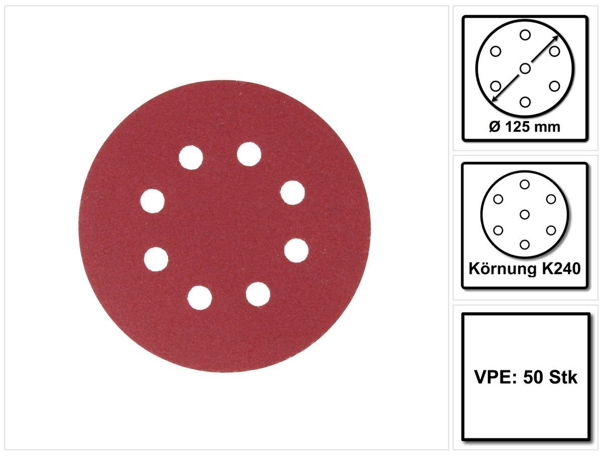 Das Klettschleifpapier sorgt durch die 8-fach Lochung für eine optimale Absaugung. Es eignet sich für Holzarbeiten, Farbe und Lack. Die Schleifscheiben sind mit allen 125 mm Exzenterschleifern kompatibel.