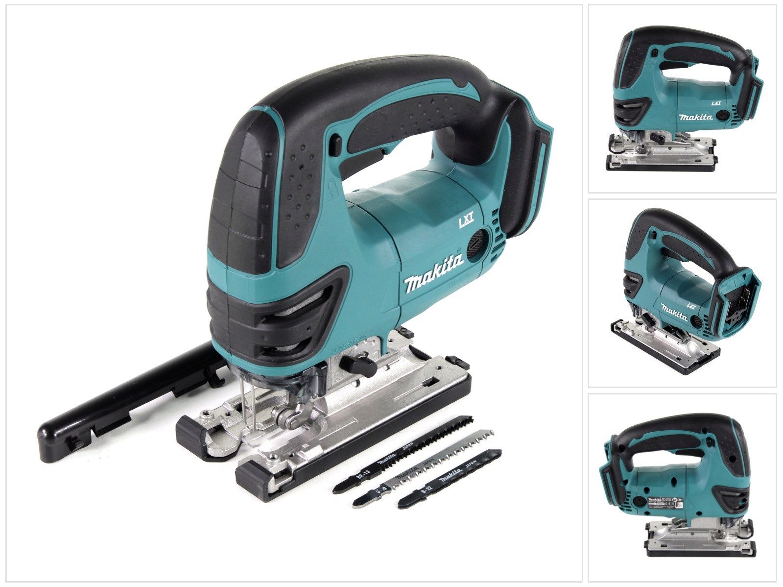 Die robuste Makita DJV 180 Stichsäge besticht mit ihrer niedrigen Geräuschentwicklung und der stufenlos regelbaren Hubzahl. Das Gerät verfügt über eine integrierte leuchtstarke LED Lampe und eine ausgezeichnete Vibrationsdämpfung. Des Впередen verfügt das Gerät über eine bis zu 45° schwenkbare Grundplatte aus Aluminium und die Sägeblätter lassen sich mühelos, schnell und werkzeuglos wechseln.