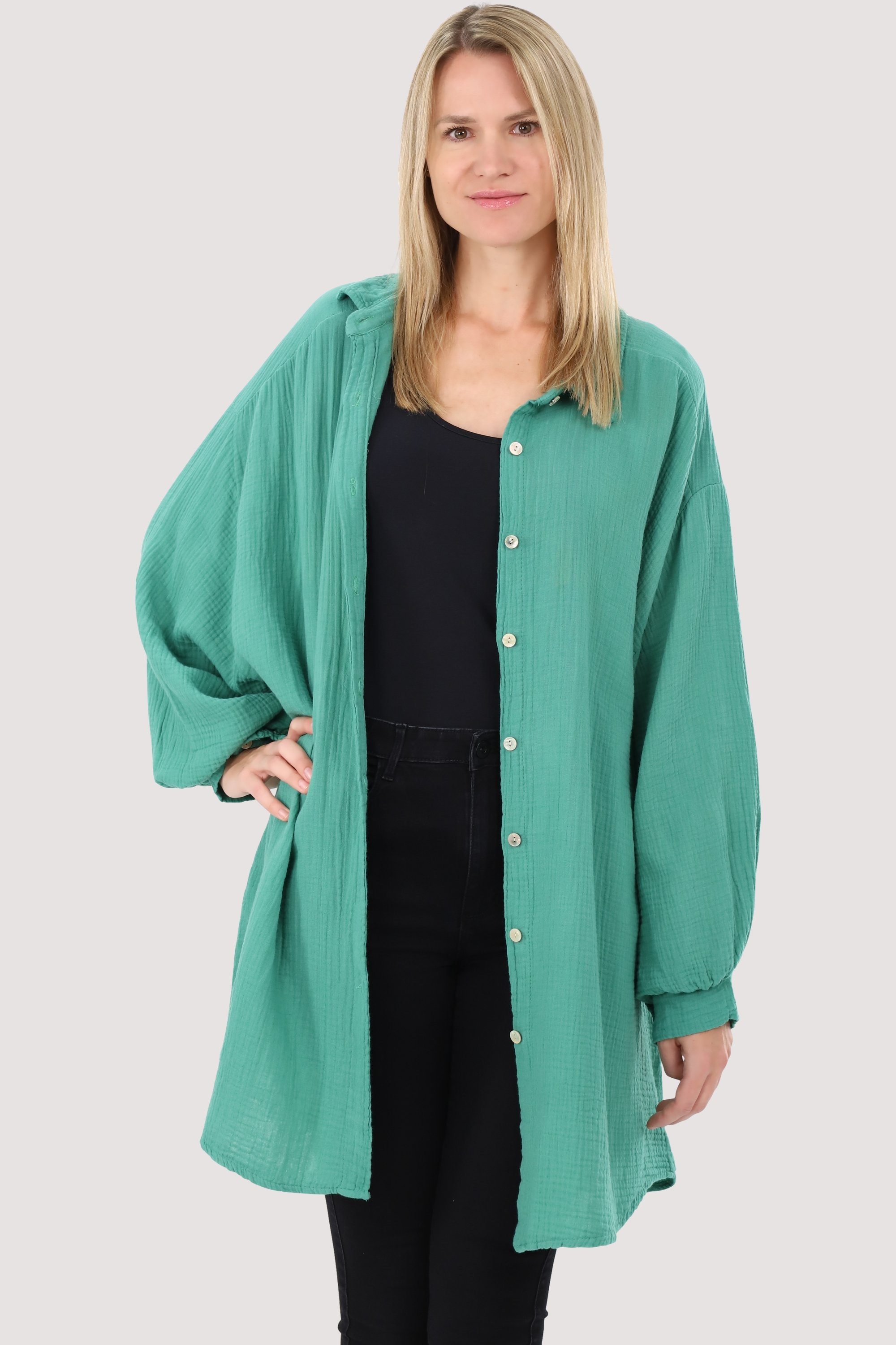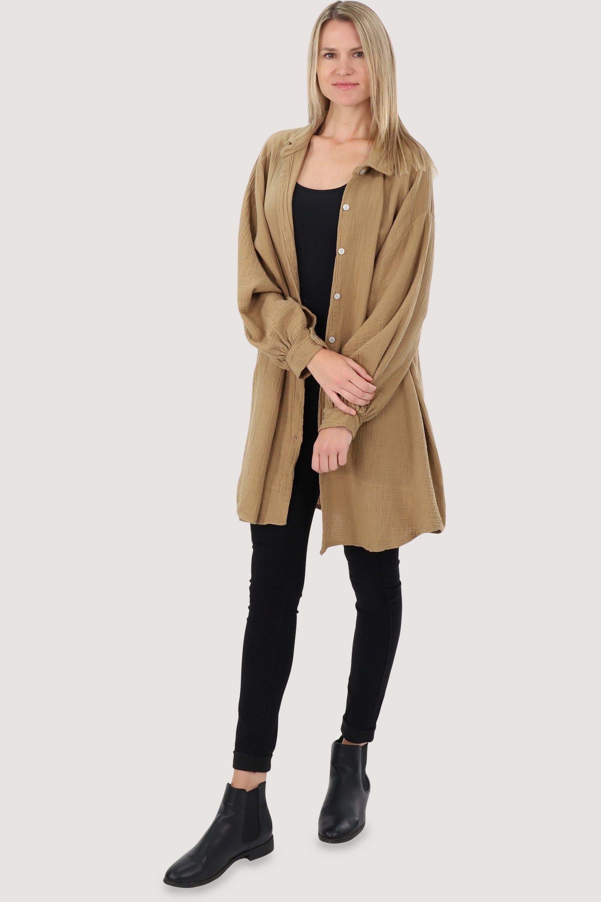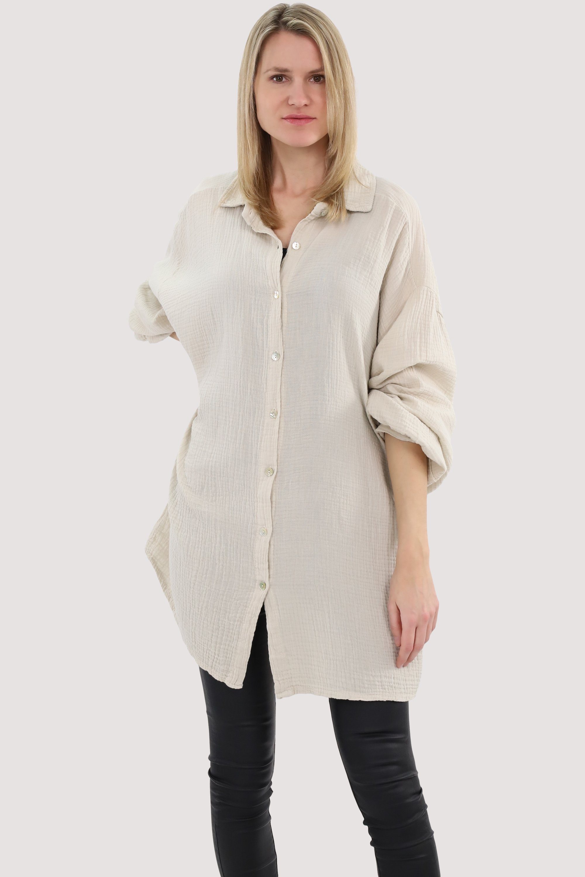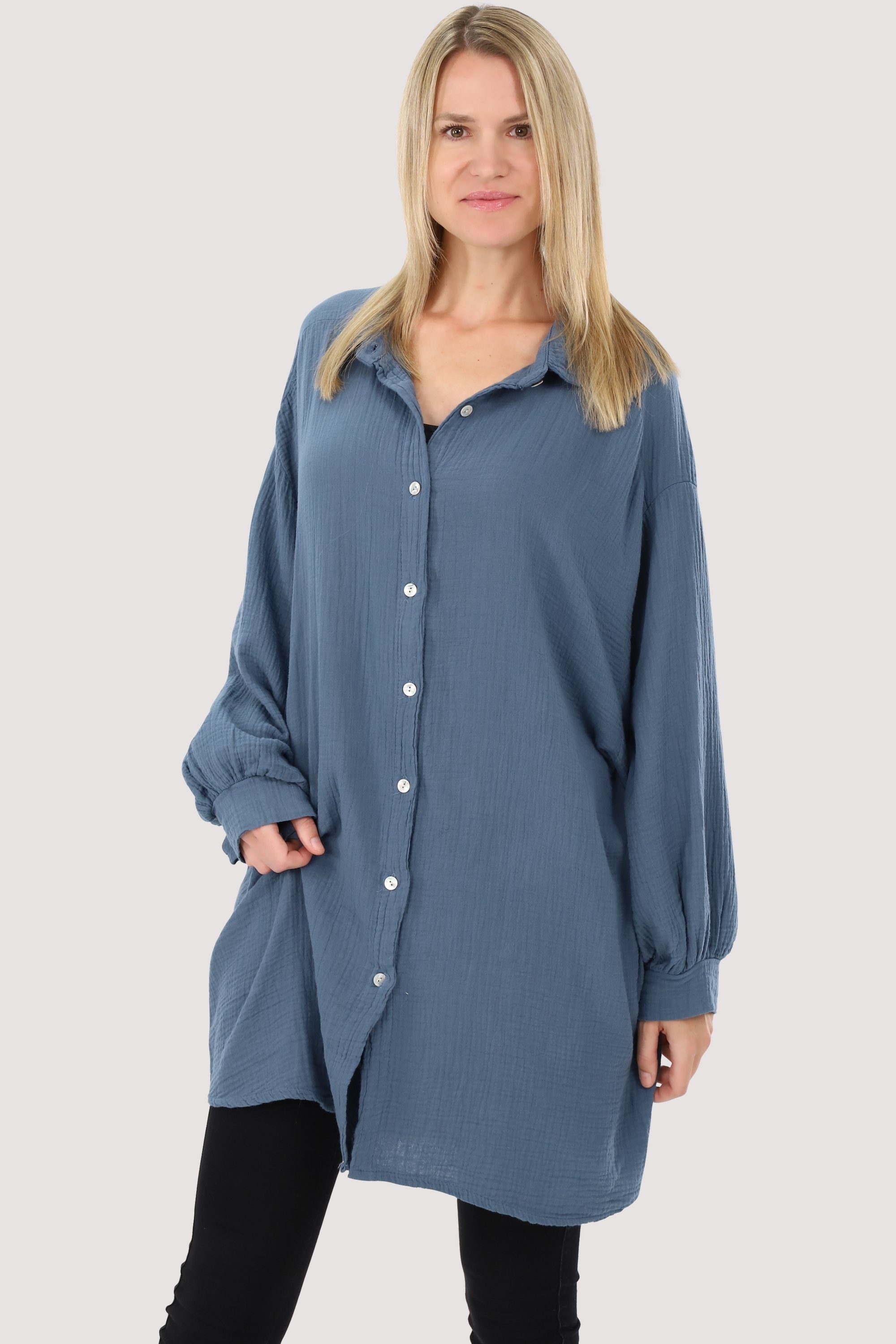 Besonderheiten: Entdecken Sie die Musselin-Bluse von malito more than fashion - ein Must-Have für alle Fashion-Liebhaberinnen! Diese Bluse ist aufgrund ihres leichten und atmungsaktiven Gewebes sehr bequem zu tragen, besonders an warmen Tagen. Der luftige Schnitt wurde bewusst gewählt, um die leichte und transparente Textur des Stoffs hervorzuheben und gleichzeitig Komfort und Bewegungsfreiheit zu bieten. Die zarte, seidige Optik von Musselin-Blusen verleiht ihnen einen femininen und eleganten Look. Ob lässig oder elegant gestylt - diese Bluse passt zu vielen verschiedenen Outfits und ist ein echtes Allroundtalent in Ihrem Kleiderschrank. Gönnen Sie sich jetzt die Musselin-Bluse von malito more than fashion und erleben Sie den perfekten Mix aus Komfort und Style!