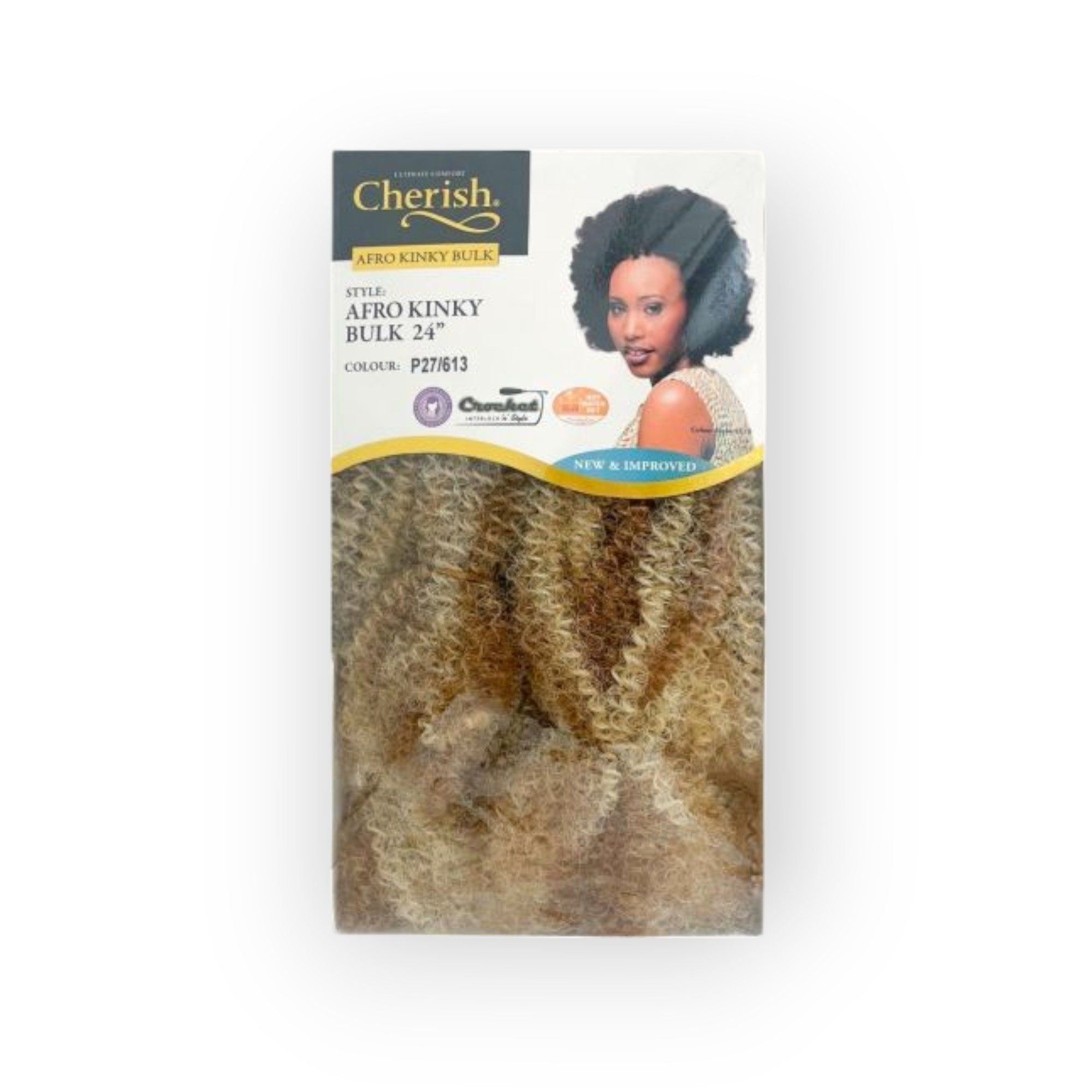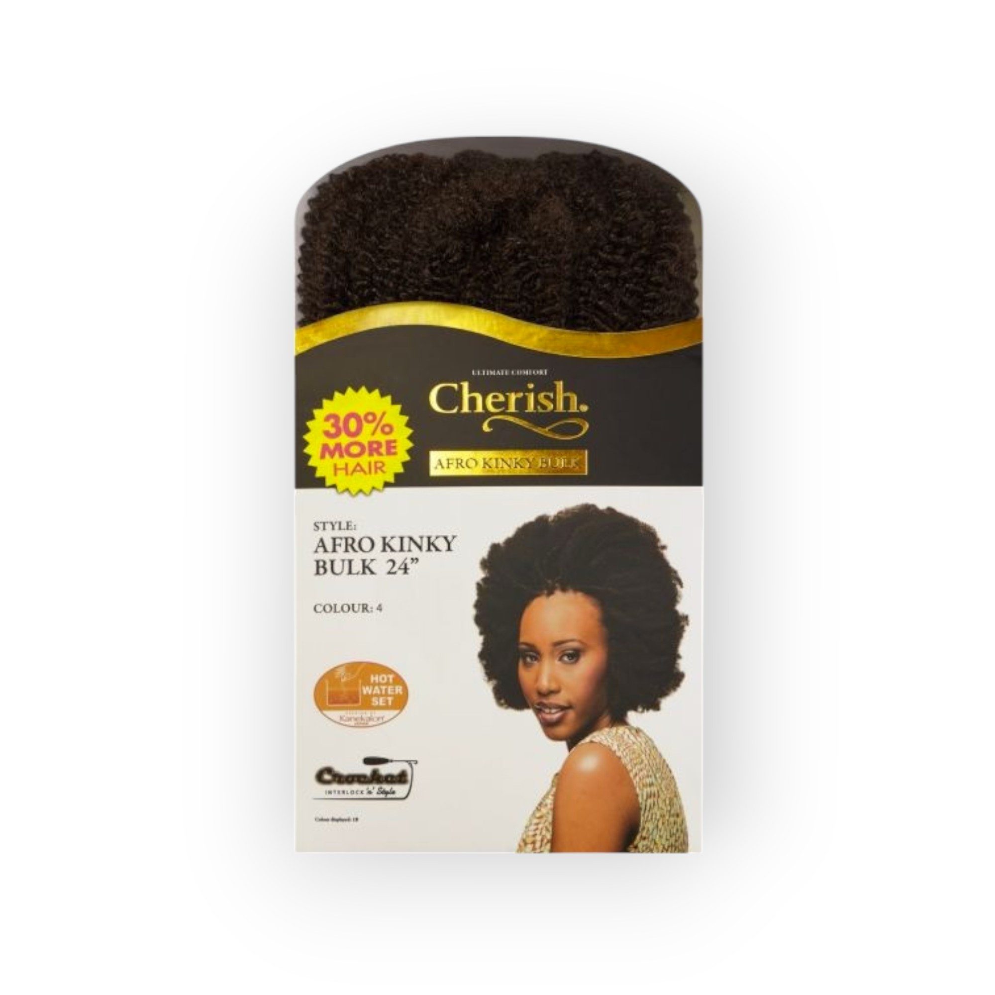 Die Cherish Bulk – Afro Kinky 24" ist eine synthetische Haarverlängerung, die speziell für voluminöse, natürliche Styles wie Twists, Braids oder Afro-Looks entwickelt wurde. Mit einer Длина von 24 Zoll bietet sie ausreichend Spielraum für lange, ausdrucksstarke Frisuren. Die Textur im Afro-Kinky-Stil imitiert das natürliche Lockenmuster afro-texturierter Haare und sorgt für einen authentischen, kraftvollen Look. Das Haar ist leicht zu verarbeiten, verheddert sich nicht und eignet sich ideal für kreative Stylings wie Senegalese Twists, Faux Locs oder Puff-Styles. Es ist in verschiedenen Farben erhältlich – von natürlichen Tönen bis hin zu auffälligen Nuancen – und lässt sich gut mit anderen Haarteilen kombinieren.