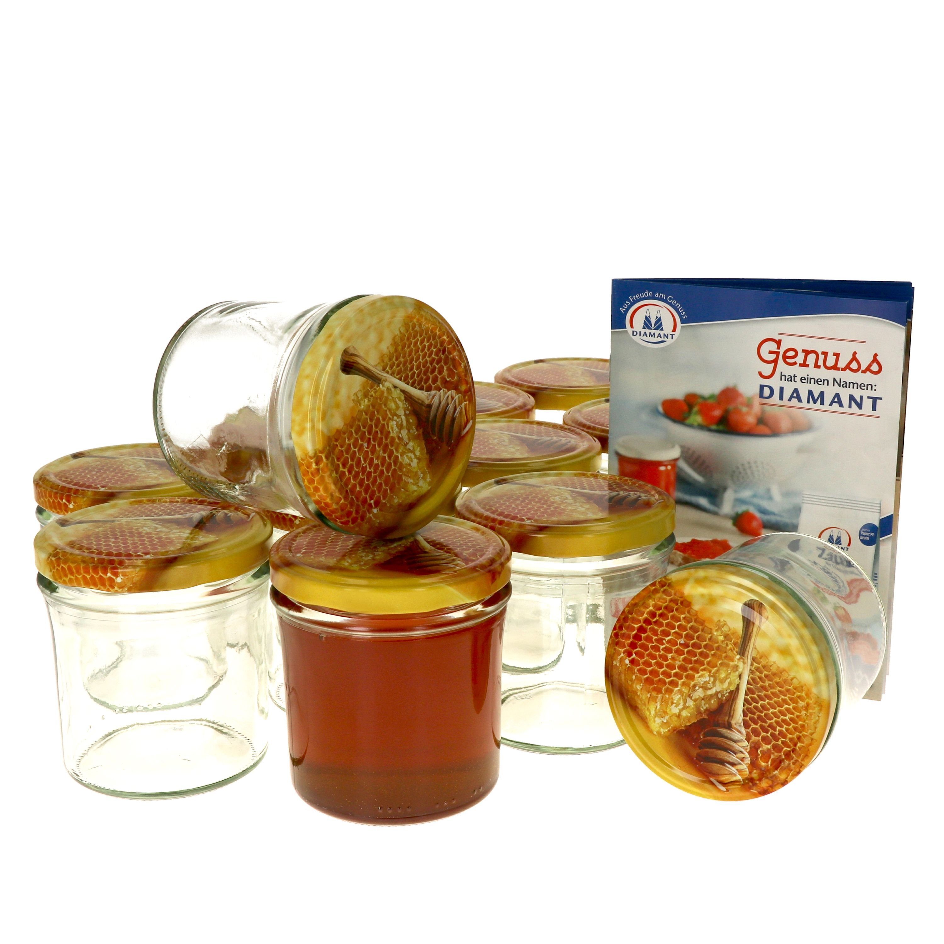 Einmachglas 12er Set Sturzglas 350 ml Carino Deckel mit Honigwabe incl. Rezeptheft