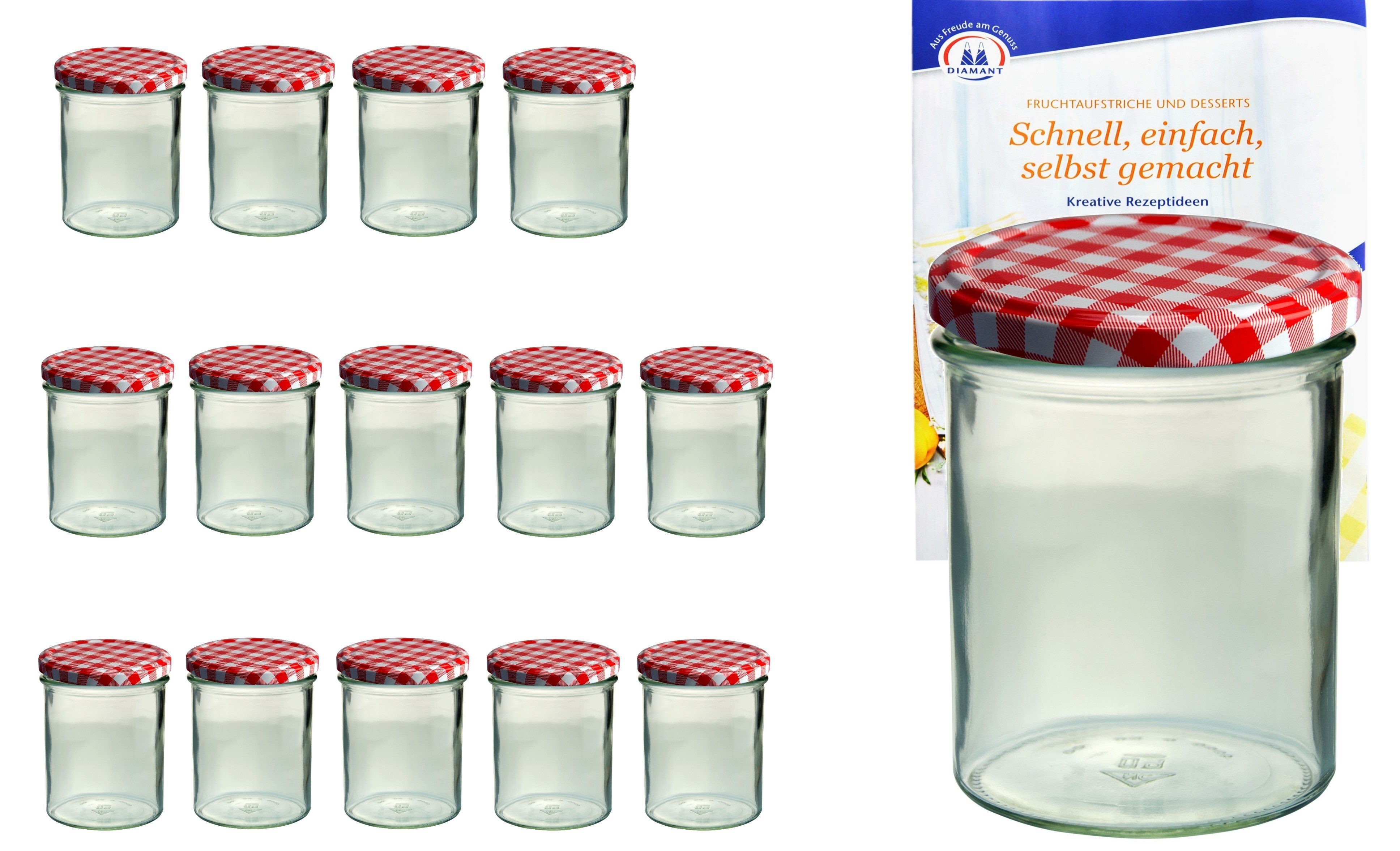 Einmachglas 15er Set Sturzglas 350 ml To 82 rot karierter Deckel incl. Rezeptheft