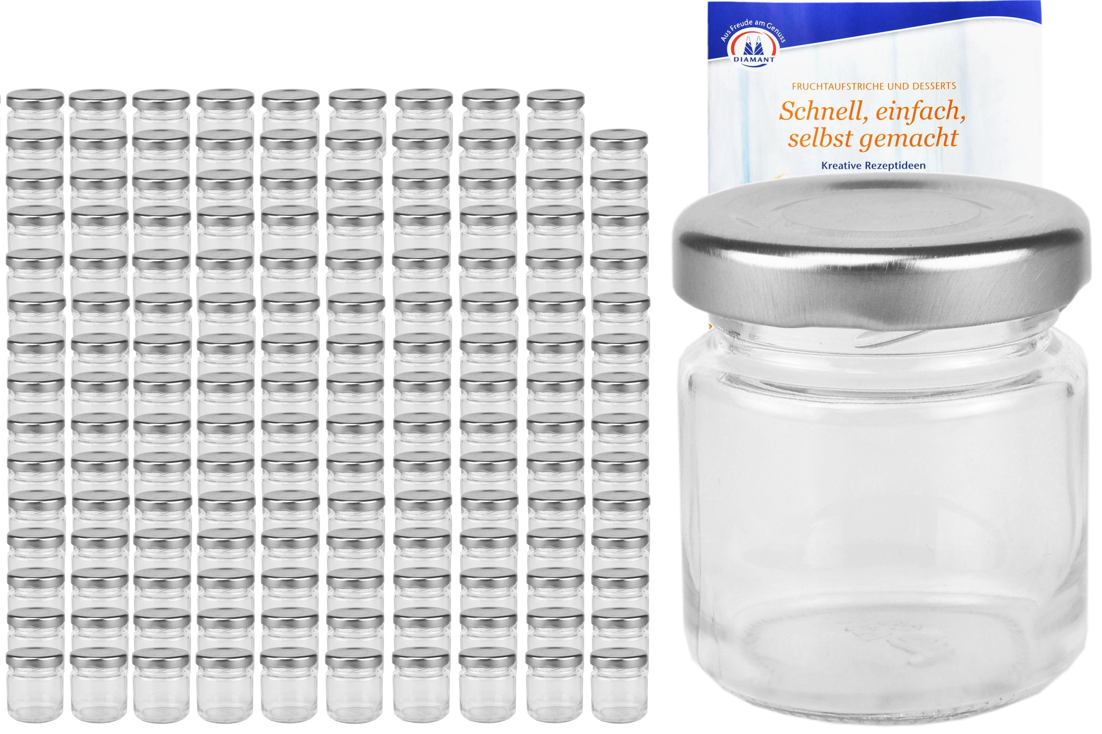 MamboCat Einmachglas 200er Set Sturzglas 53 ml To 43 silberner Deckel incl. Rezeptheft, Glas