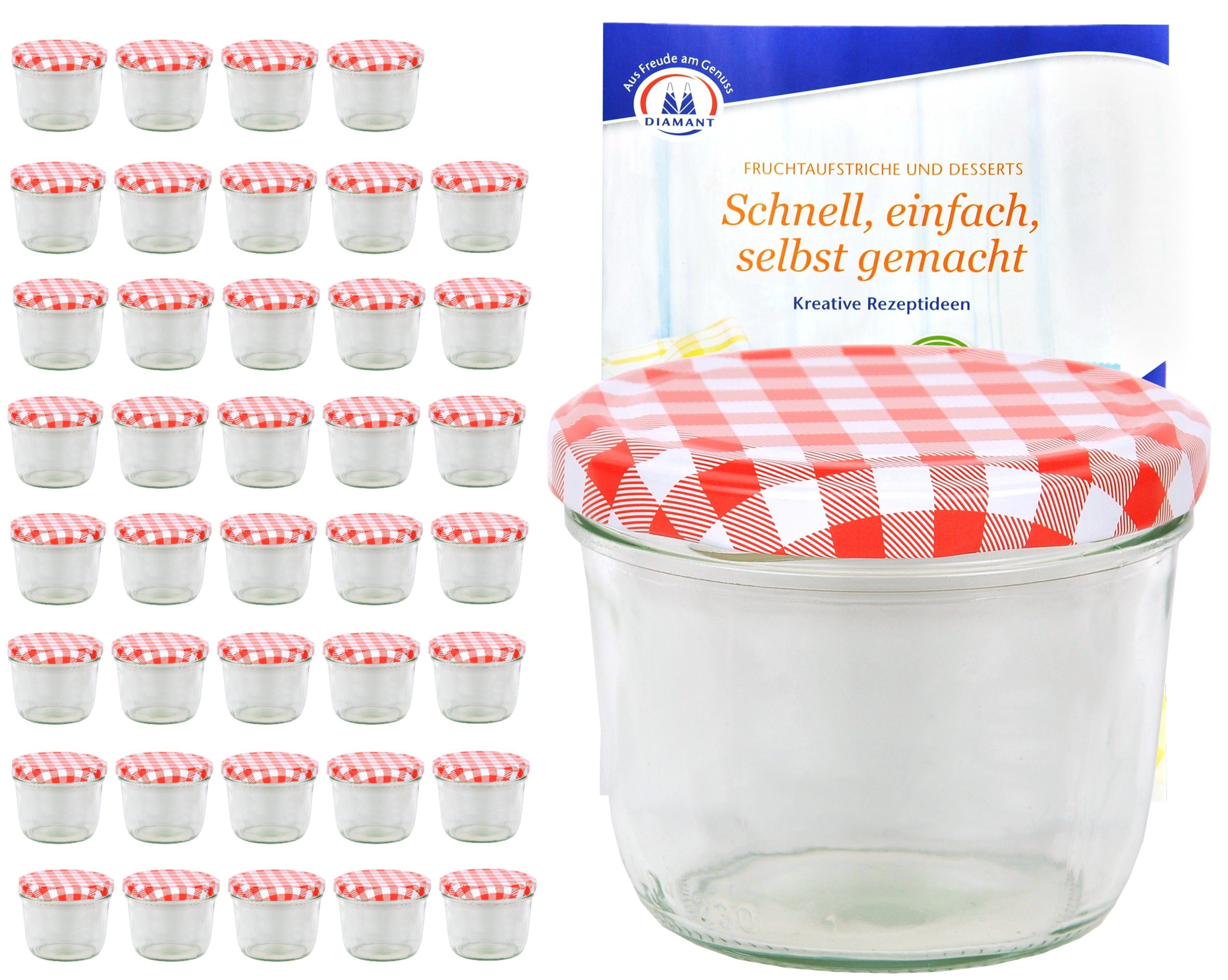 Einmachglas 40er Set Sturzglas 230 ml mit rot kariertem Deckel inkl. Rezeptheft