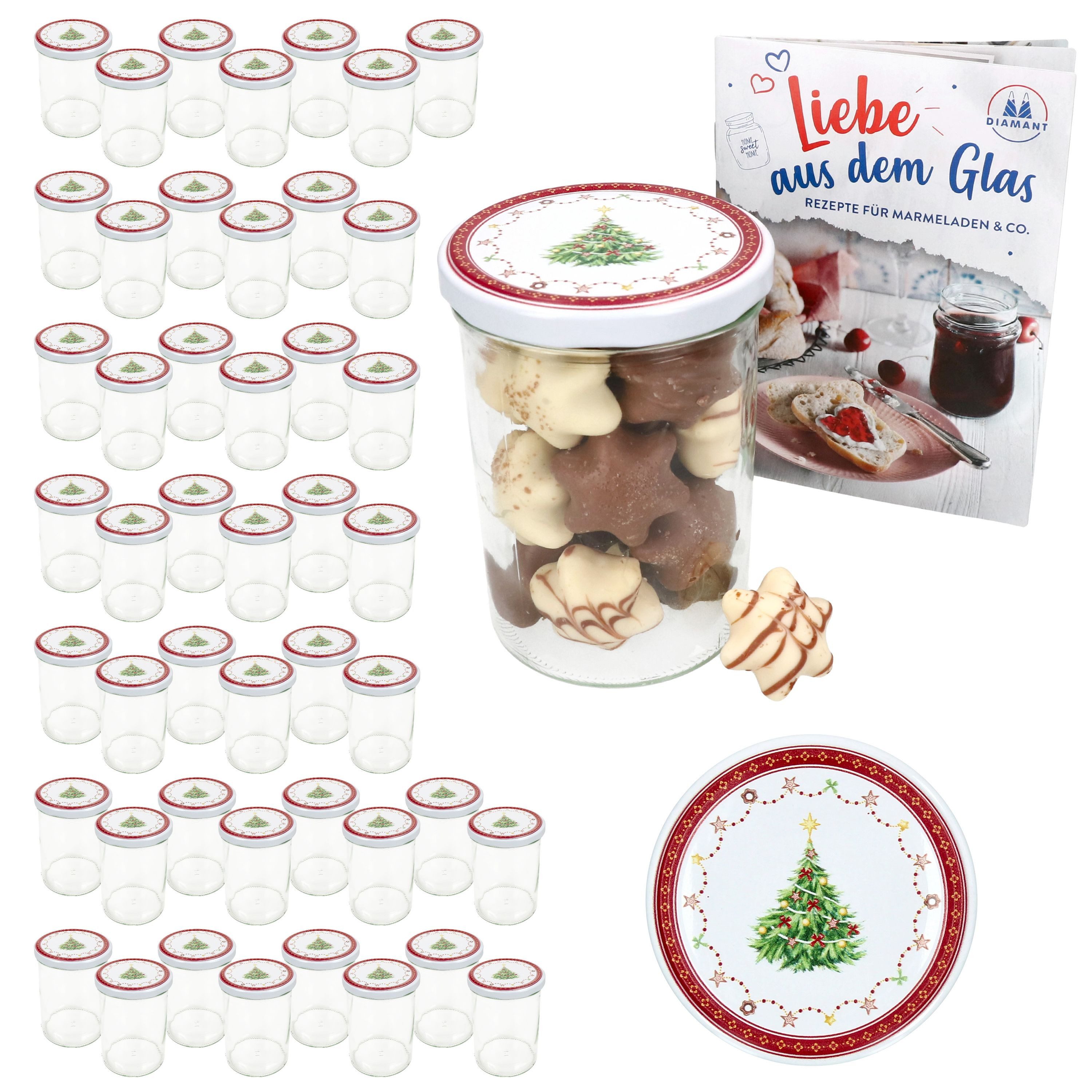 Mit diesem 50er Set 435 ml Sturzgläser inklusive Twist-Off-Deckel mit Tannenbaum, Weihnachts-Dekor und rotem Rand darauf sowie GRATIS Rezeptheft sind Sie bestens ausgestattet, um die unterschiedlichsten Leckereien einzukochen.