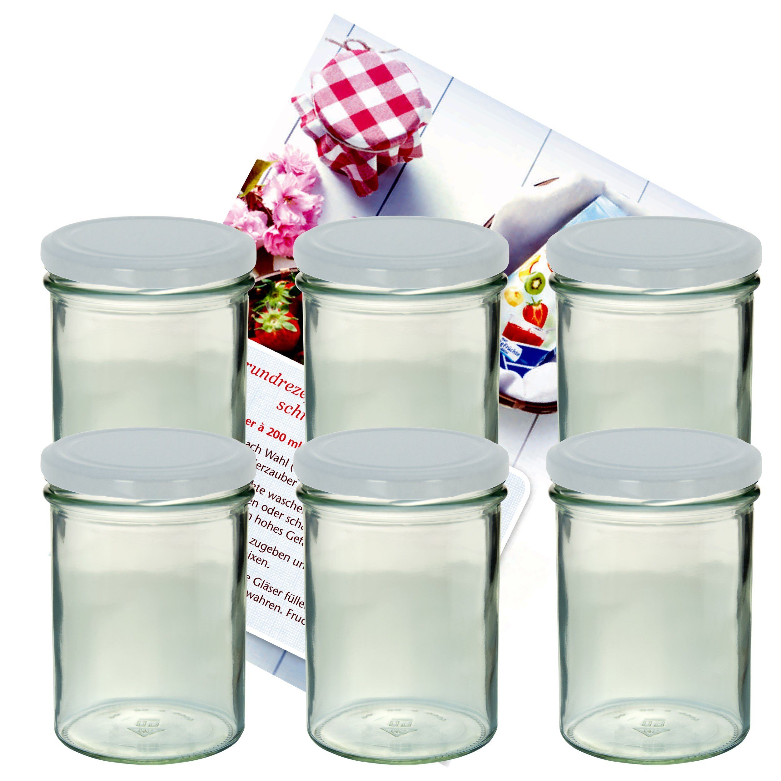 Wunderschöne Sturz-Marmeladengläser, mit dazugehörigen Deckeln, zum luftdichten Verschließen und Konservieren Ihrer Lebensmittel.
