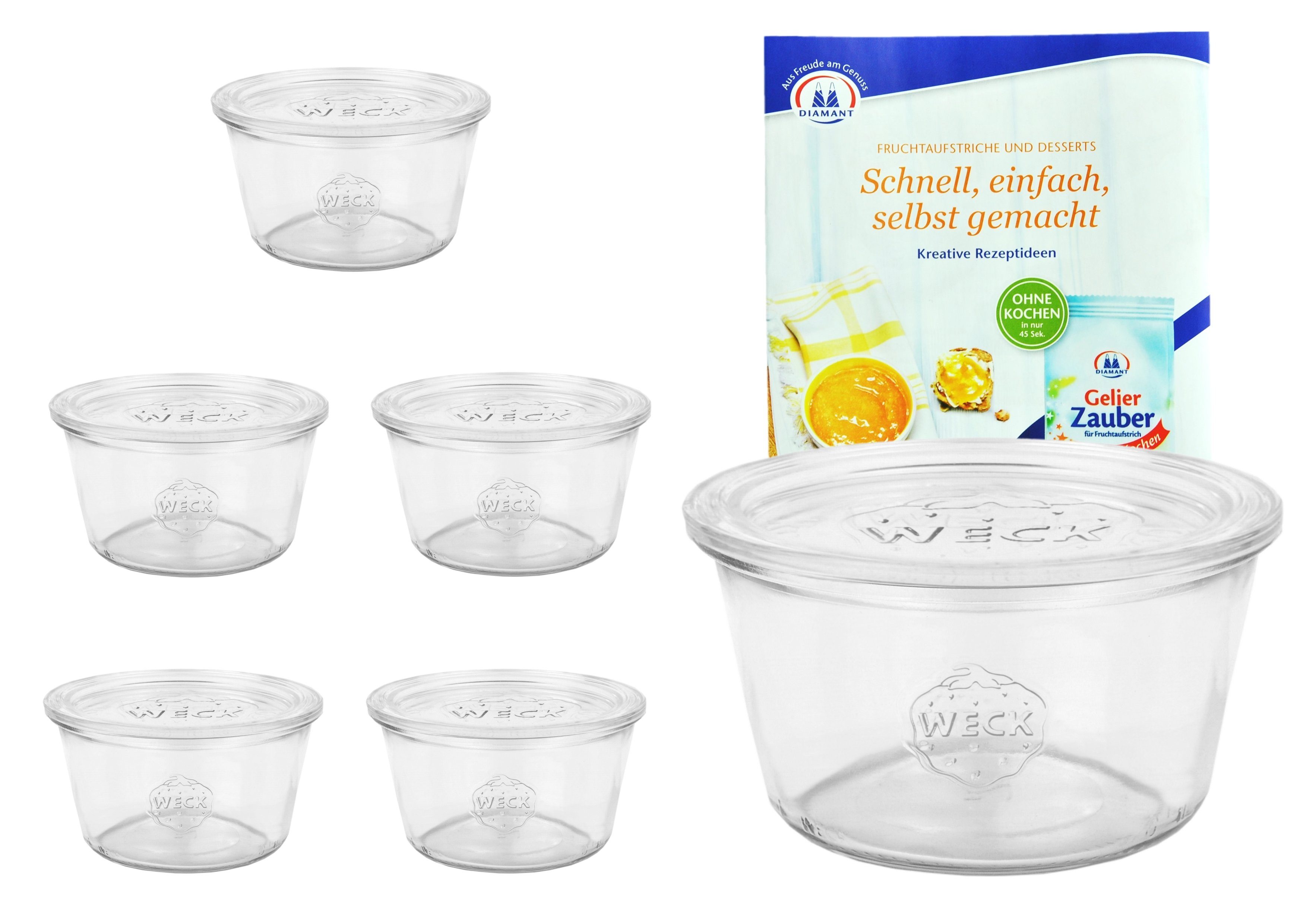 Vorteile: Die glatte Oberfläche lässt sich kinderleicht reinigen und trocknet blitzschnell. Kuchen kann direkt im Glas gebacken werden, denn WECK-Sturzgläser sind backofentauglich. Auch Einfrieren ist möglich. Schauen Sie gern nach den unterschiedlichen Verschlussmöglichkeiten! Zu heftige Temperatursprünge sollten unbedingt vermieden werden. GRATIS zu Ihrer Bestellung erhalten Sie bei uns das Heft mit kreativen Rezeptideen.