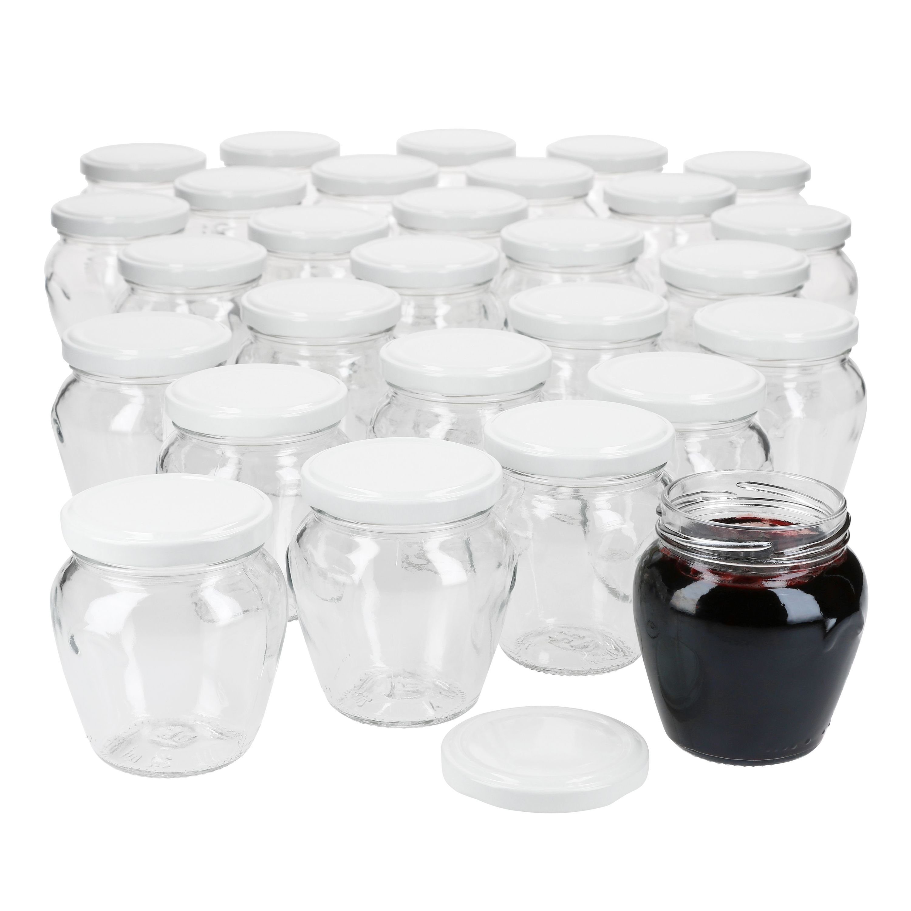 Wunderschöne Marmeladengläser mit dazugehörigen Deckeln zum luftdichten Verschließen und Konservieren Ihrer Lebensmittel. Klassischerweise wird die spezielle Glasform gern zum Einkochen von Konfitüre, Mus und Gelee genutzt. Natürlich können diese auch für andere Füllgüter wie Wurst, Obst und Gemüse sowie zur Aufbewahrung von Küchenkräutern und Gewürzen verwendet werden.