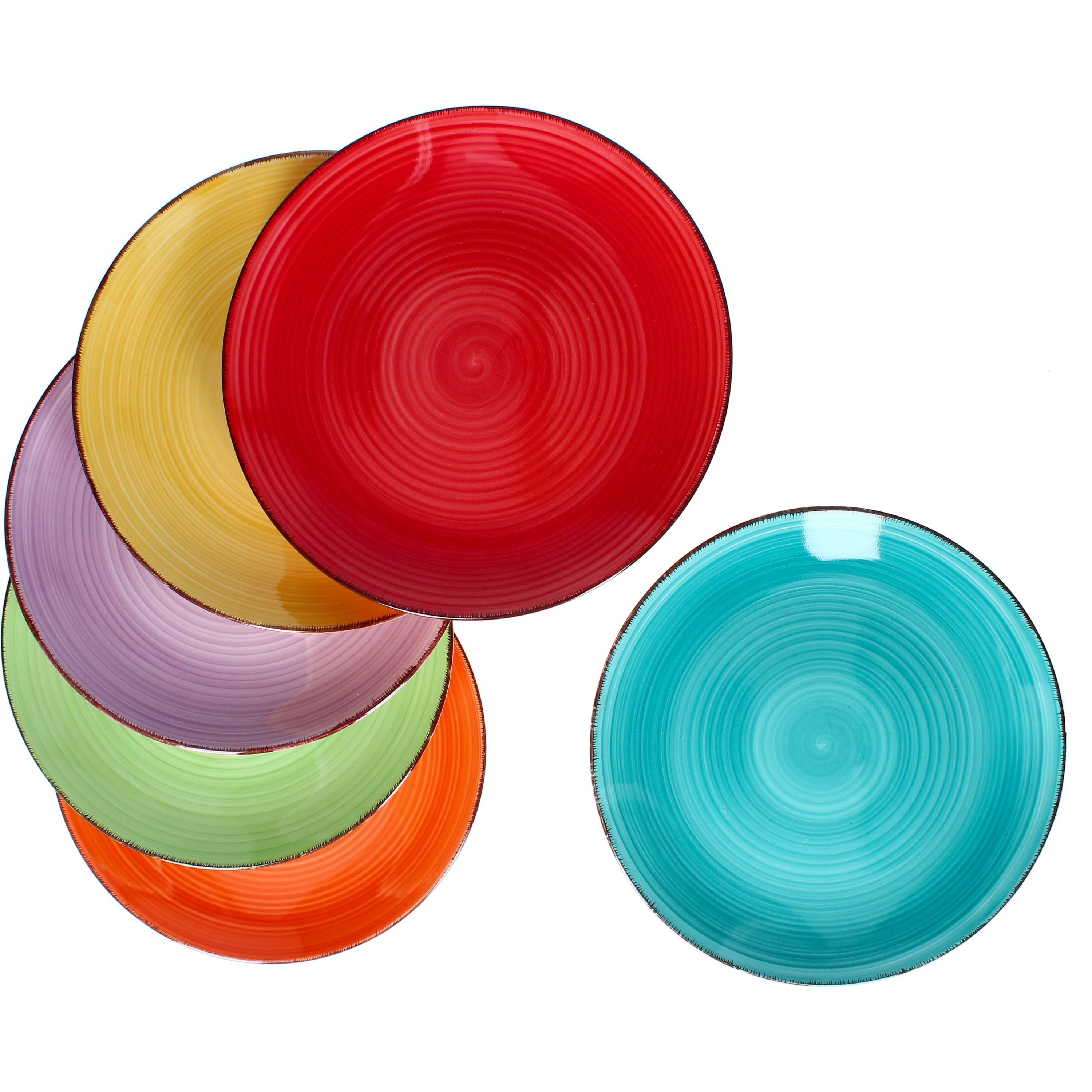 Wunderschöne Speiseteller im mediterranen Stil. Bis zu 6 Personen profitieren gleichzeitig von dem vorteilhaften Tellerset. Die großen Menüteller mit einem Durchmesser von Ø 27 cm eignen sich ideal zum Anreichen des Hauptgangs, sind aber auch sehr beliebte Grillteller oder als Servierplatte zum Brunch & Buffet verwendbar. Starten Sie farbenfroh in den Tag und setzen Sie zugleich trendige Akzente bei Tisch!