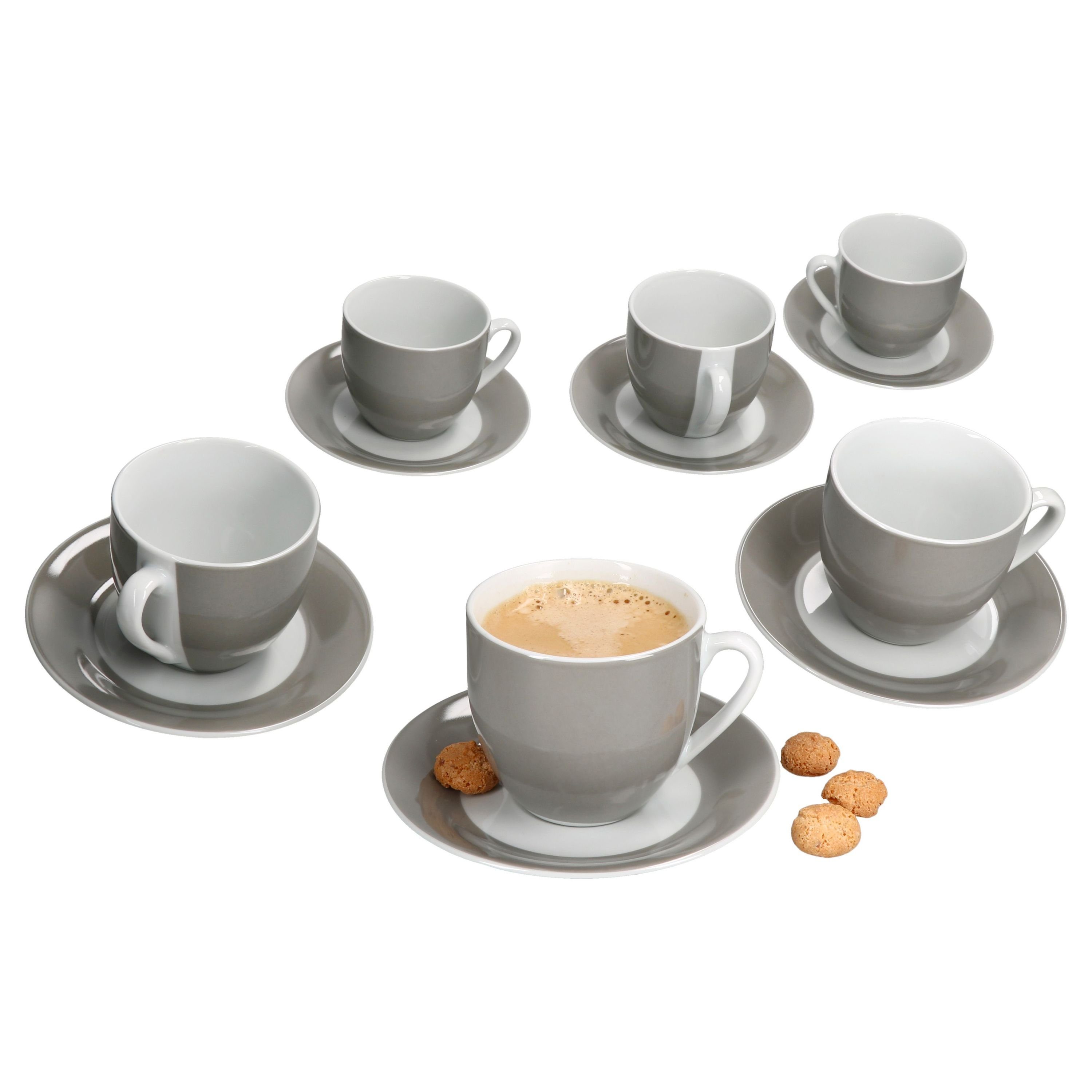 Tasse 6er Set Variant Grau Kaffeetassen mit Untertassen für 6 Personen