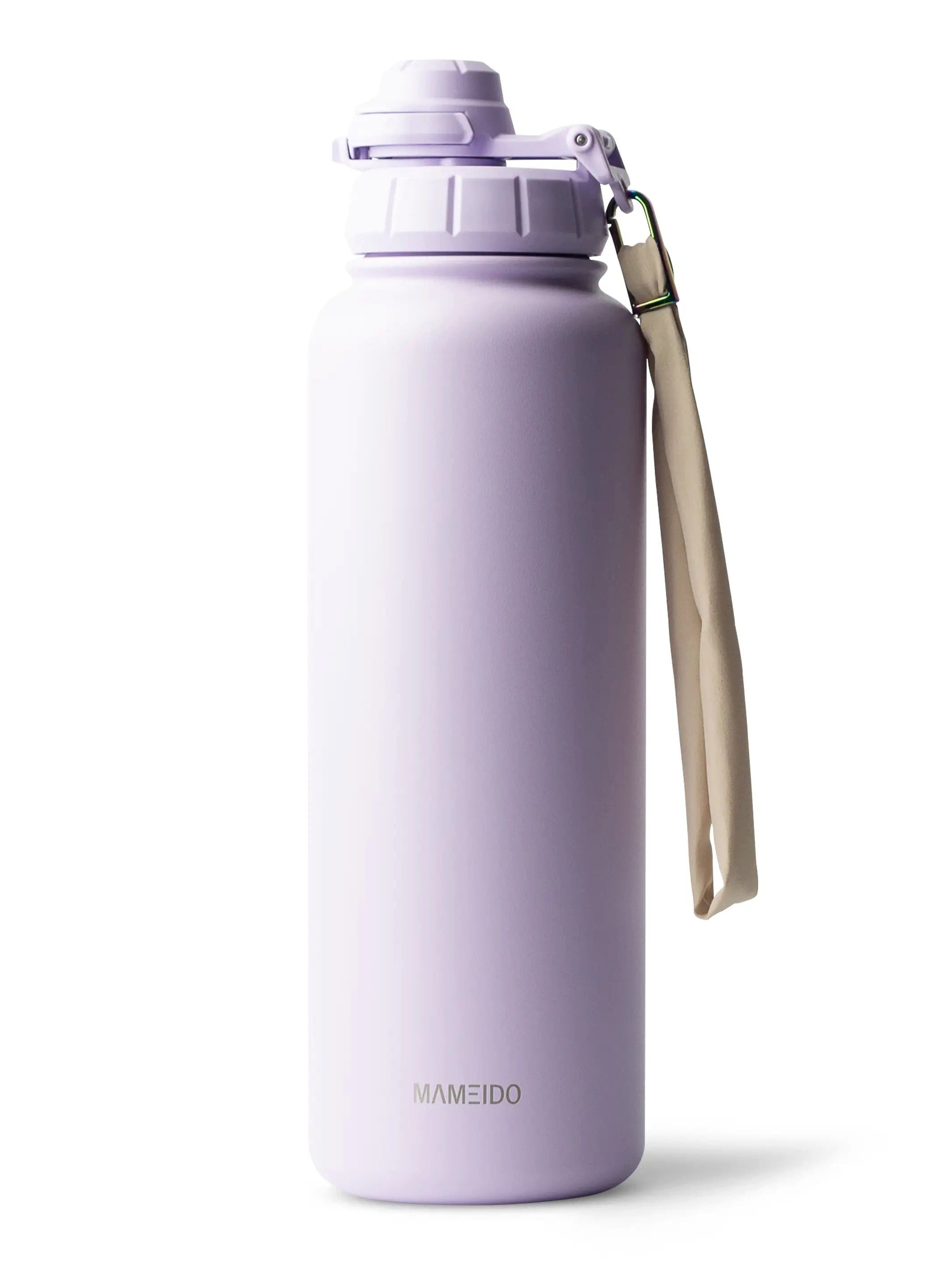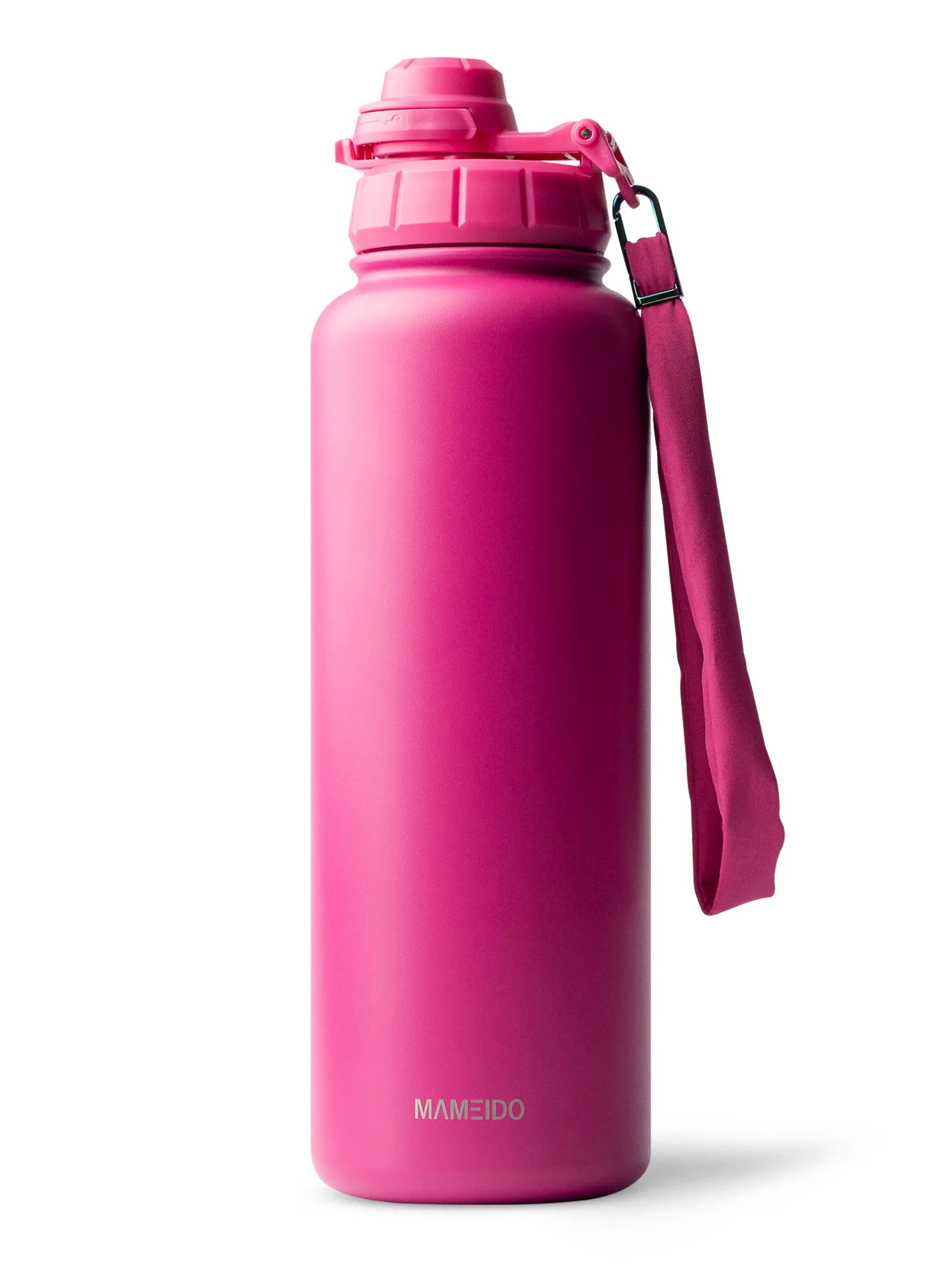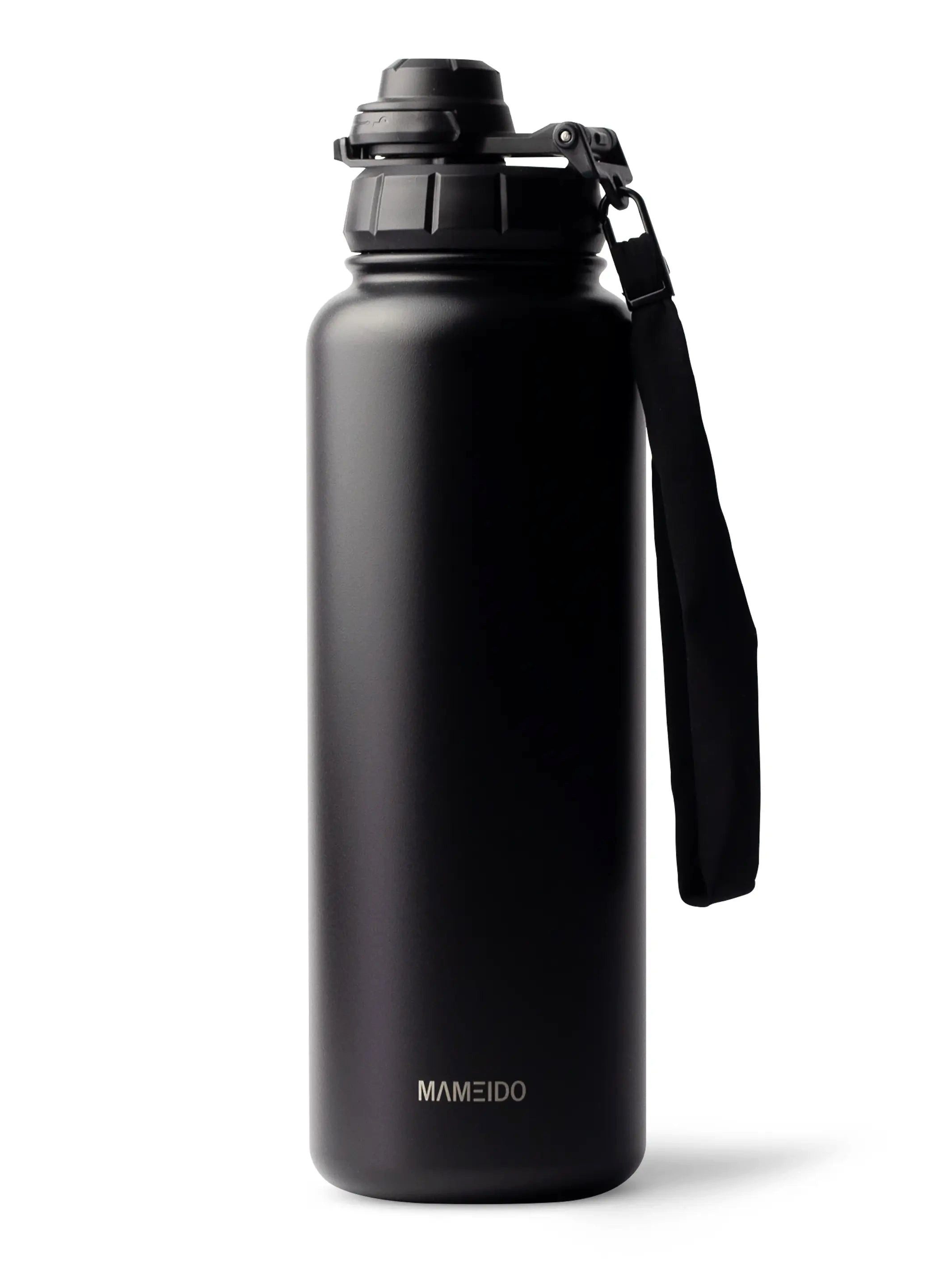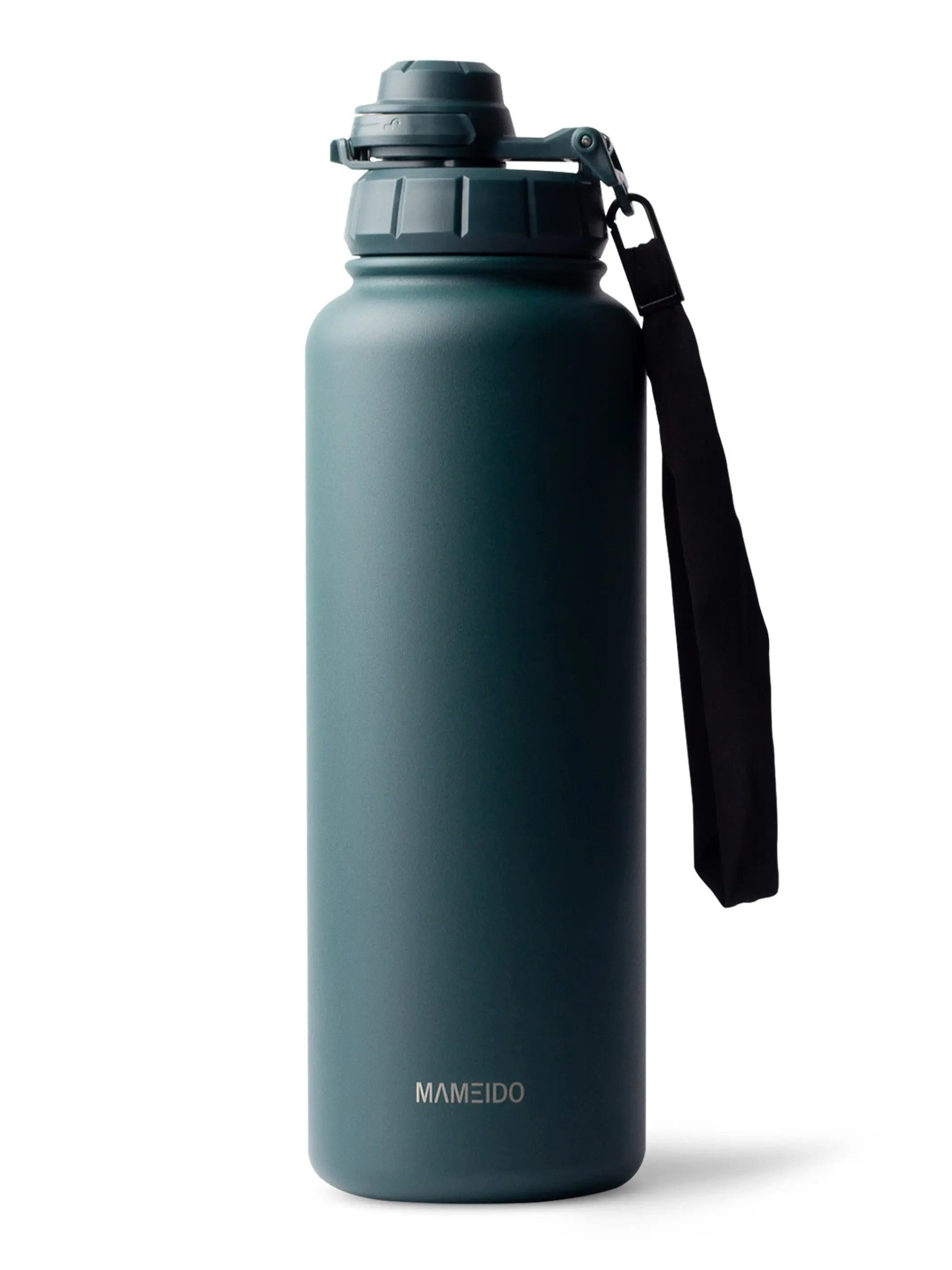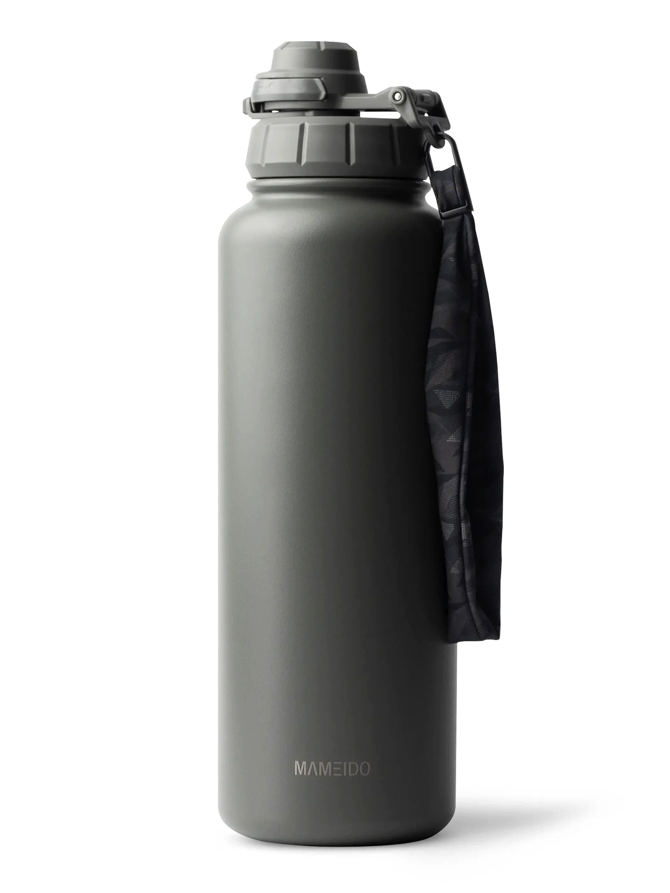 Die MAMEIDO Thermosflasche mit 2-in-1 Deckel und integriertem Strohhalm bietet dir maximalen Trinkkomfort – ganz ohne Kippen der Flasche. Egal ob im Büro, beim Training oder unterwegs: Dank praktischem Klappdeckel mit Strohhalm trinkst du jederzeit bequem, hygienisch und tropffrei. Gefertigt aus hochwertigem, doppelwandigem 18/8 Edelstahl bleibt dein Getränk zuverlässig heiß oder erfrischend kühl – und das ganz ohne Geschmacksübertragung. Der dichte Schraubverschluss schützt vor dem Auslaufen, während das stilvolle, matte Design die Flasche zu einem modernen Alltagsbegleiter macht. Die MAMEIDO Trinkflasche mit Handschlaufe ist in drei Größen erhältlich und passt sich deinem Tagesablauf perfekt an. Die 500 ml Варианты ist besonders kompakt und ideal für kurze Wege, Schule oder den Stadtbummel. Die 700 ml Version eignet sich hervorragend für Büro, Training oder längere Termine. Die 1200 ml Flasche ist wie gemacht für ausgedehnte Workouts, lange Arbeitstage oder Ausflüge, bei denen du nicht ständig nachfüllen möchtest.