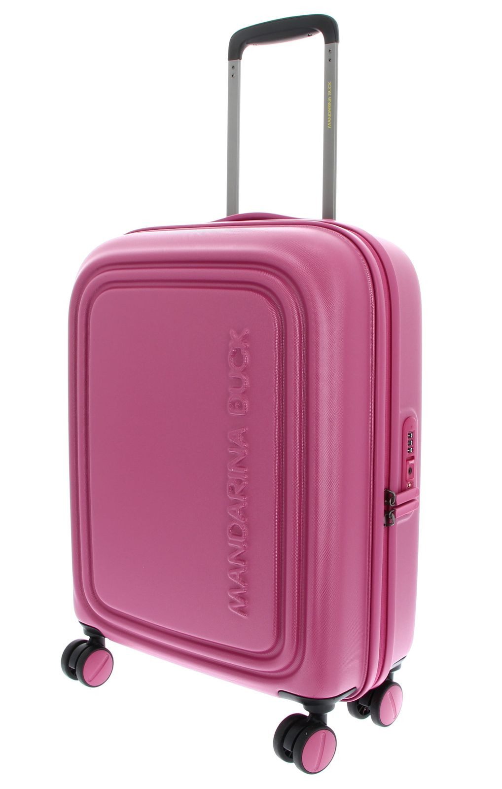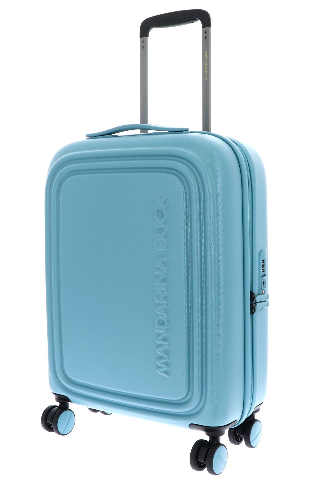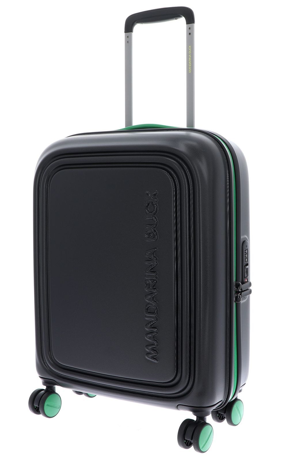 In diesem MANDARINA DUCK Trolley kommen all Ihre Habseligkeiten unter. Egal ob Kleidung, Kosmetikartikel, Handtuch oder Glätteisen, hier finden Sie für alles einen Platz. Die leisen Rollen des MANDARINA DUCK Logoduck + Cabin Trolley lassen ihn schnell und unkompliziert hinter sich herziehen. Ihr Gepäck tragen Sie mit diesem Trolley immer sicher bei sich, denn der neue Liebling ist zudem mit einem Zahlenschloss ausgestattet.