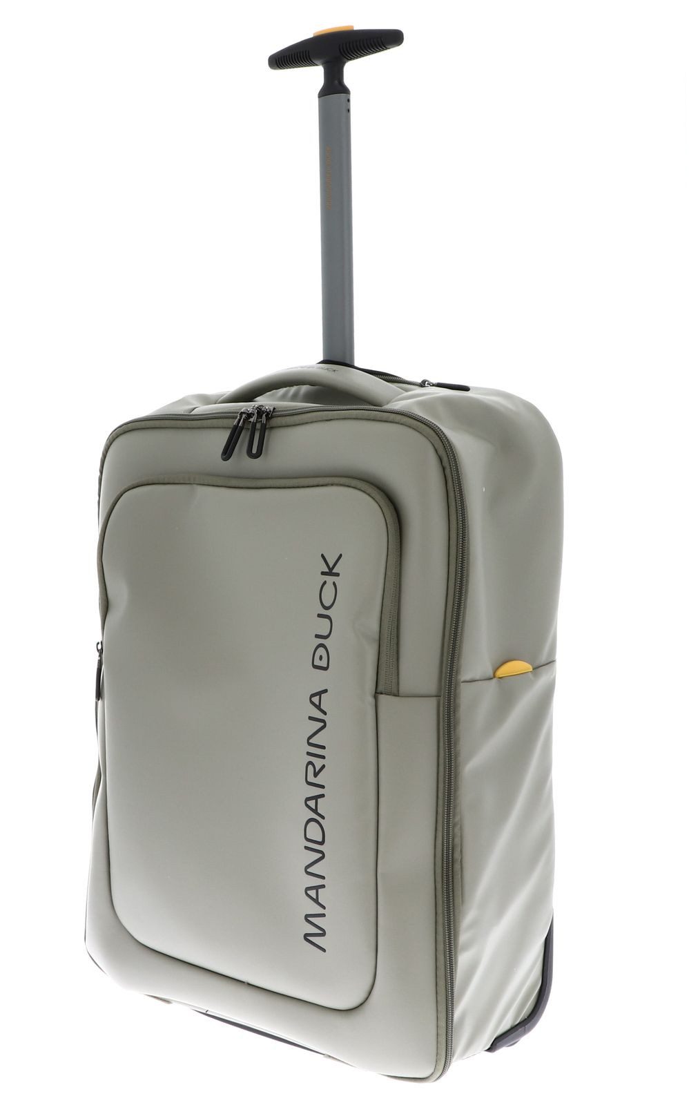Dieser neue MANDARINA DUCK Trolley macht jeden Kurztrip zu einem Vergnügen. Im Inneren kommen Ihre Dinge übersichtlich und geordnet unter. Der MANDARINA DUCK Eco Coated Trolley Backpack besitzt eine großzügige Fächeraufteilung, in der Ihre Utensilien übersichtlich unterkommen. Bequem auf den leisen Rollen hinterhergezogen oder mit den Schultergurten auf den Rücken geschnallt, kommen Sie flexibel von A nach B. Ein echter Allrounder der Eco Coated Trolley Backpack.