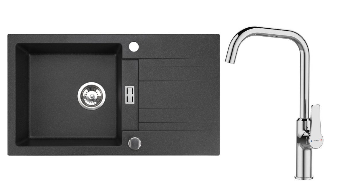 Holen Sie sich jetzt die perfekte Ergänzung für Ihre Küche - einen rechteckig Spülbecken mit Abtropffläche und einer stilvollen Küchenarmatur. Sie bestehen aus bis zu 80 % Quarzsand und überzeugen durch ihr modernes Design sowie ihre außergewöhnliche Langlebigkeit. Entgegen vieler Mythen sind unsere Spülen sehr pflegeleicht und besonders robust. Genießen Sie die Funktionalität und das moderne Design, während Sie Ihre Küche aufwerten. - Farbe: Graphit - Schwarz Gesprenkelt - Produktabmessungen: 76 x 44 x 15 cm - Modernes Design: Die Spüle ist eine ideale Ergänzung für jede heutige Küche, weil sie sich durch ihr zeitloses Design auszeichnet und einen einzigartigen Charakter verleiht - Fleckenbeständig: Unsere Granitspüle ist schmutzabweisend und auf ihrer Oberfläche entstehen keine unästhetischen Flecken - Hochwertige Verarbeitung: Dank der hochwertigen Materialien ist die Spüle gegen Stößen, Kratzer, Schmutz und thermischen Schock resistent - In EU hergestellt: Das Spülbecken wurde aus den hochwertigsten Materialien produziert, denen es seine außergewöhnliche Strapazierfähigkeit verdankt - Sofortiger Einbau: Im Lieferumfang sind notwendige Montagematerialien enthalten, deshalb ist die Montage unkompliziert und sehr schnell Das Wichtigste auf einen Blick: - widerstandsfähig gegen mechanische Beschädigungen und Temperaturschwankungen - keine unästhetischen Wasserflecken auf der Spüle - praktische und hygienische Oberfläche - ausgestattet mit einem Space-Saving Siphon mit Auto-Stöpsel - mit hohem Wasserhahn mit Chrom-Finish - unkomplizierte Montage