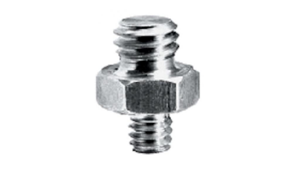 Adapter aus Messing mit einer 1/4\"-Schraube und einer 3/8\"-Schraube, mit dem Sie z.B. vorher nicht kompatibles Zubehör an Ihrem Stativ anbringen können.