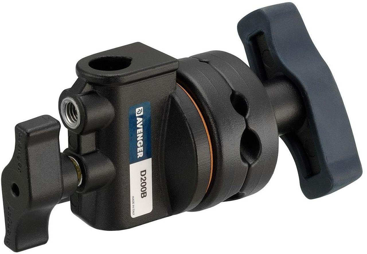 Hochwertiger 2,5’’-Griffkopf für Arme und Lichtformer auf C-Stativen. Produktbilder zeigen optionales Zubehör und Anwendungsbeispiele.