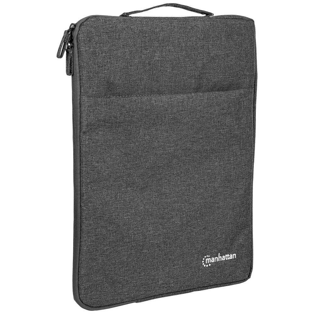 Notebookschutz in Premiumqualität und mit stylischem Touch Das Manhattan Seattle Notebook Sleeve 15,6 ist der stylische Reisebegleiter für Ihr Ultrabook™, Macbook® oder Notebook. Ihr teures Gerät verdient hochwertigen, sicheren Transport und dafür werden Sie schon beim haptischen Eindruck merken: Hier wurde an nichts gespart. Die üppige Polsterung aus flauschigem Veloursstoff im Innenfach fängt jeden Stoß locker ab. Dank des wasserfesten Materials auf der Außenseite bringen Sie Ihr Gerät trocken durch jeden Regenschauer. Nähte und Reißverschlüsse sind äußerst hochwertig verarbeitet – an dieser Tasche werden Sie lange Freude haben. Zudem ist sie kompakt genug für alle Flugzeugsitzfächer und Gepäckfächer. Attraktives Design, ein praktischer Tragegriff und ein Außenfach mit viel Platz für Ladegeräte, Kopfhörer, Kabel und andere Gegenstände runden diese Schutzhülle ab..