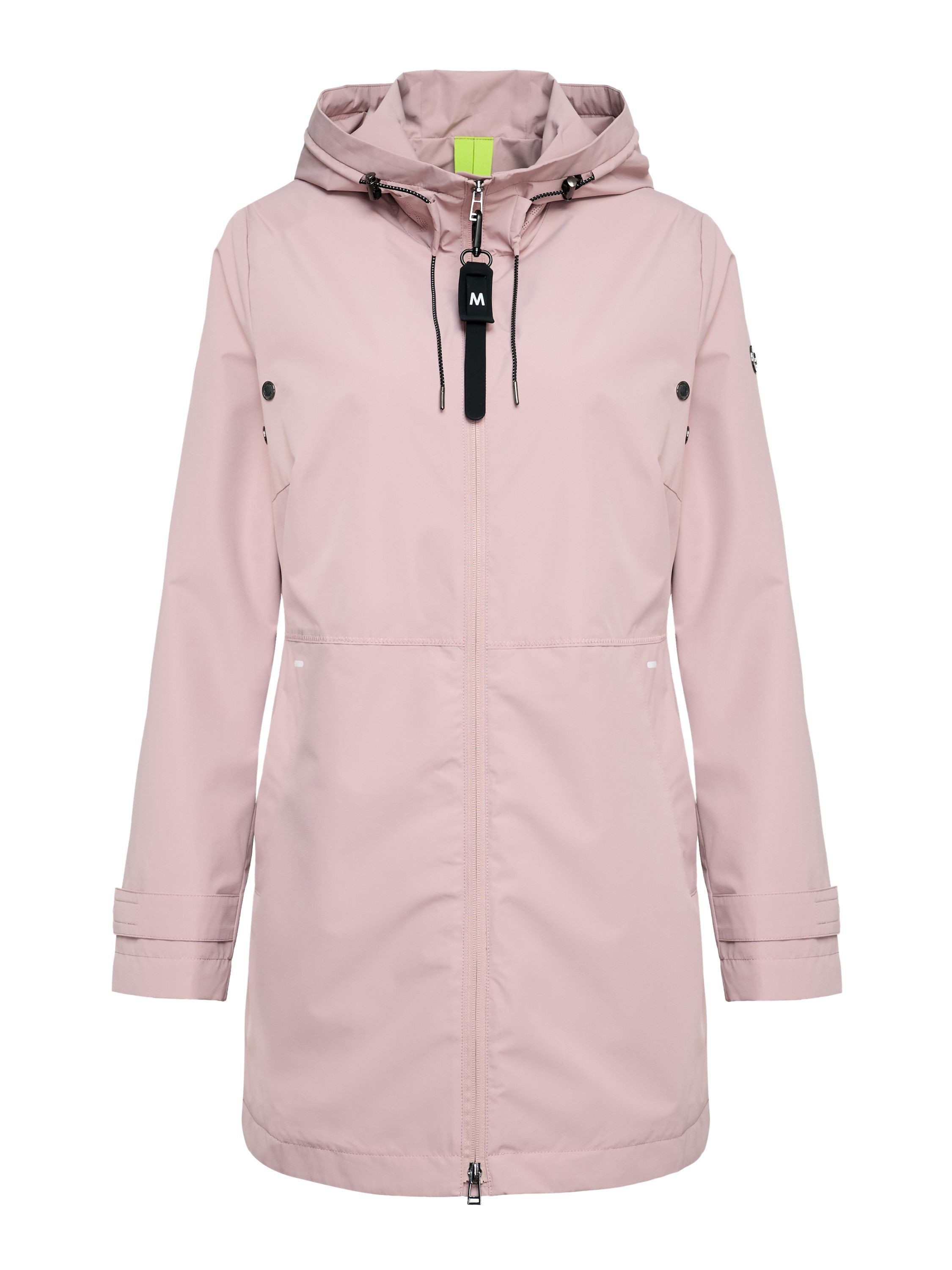 Der Rainwear-Parka aus recycelten Fasern bietet optimalen Schutz mit einem wasserdichten Oberstoff (Wassersäule 5000 mm), der zugleich winddicht und atmungsaktiv ist. Seitliche Schlitze und die angeschnittene Kapuze verleihen ihm eine lässige Silhouette, während reflektierende Details für Sichtbarkeit sorgen. Der wasserdichte 2-Wege-Reißverschluss mit dekorativem MANISA-Schlüsselanhänger und die Bauchgürteltasche unterstreichen das funktionale Design. Armriegel an den Ärmelsäumen und ein regulierbarer Saum mit Gummizug bieten individuelle Anpassungsmöglichkeiten. Belüftungsösen, das MANISA-Sleevebadge und ein kontrastierendes Innenfutter mit MANISA-Print und Reißverschluss-Innentasche runden den Parka als modischen Allrounder ab.