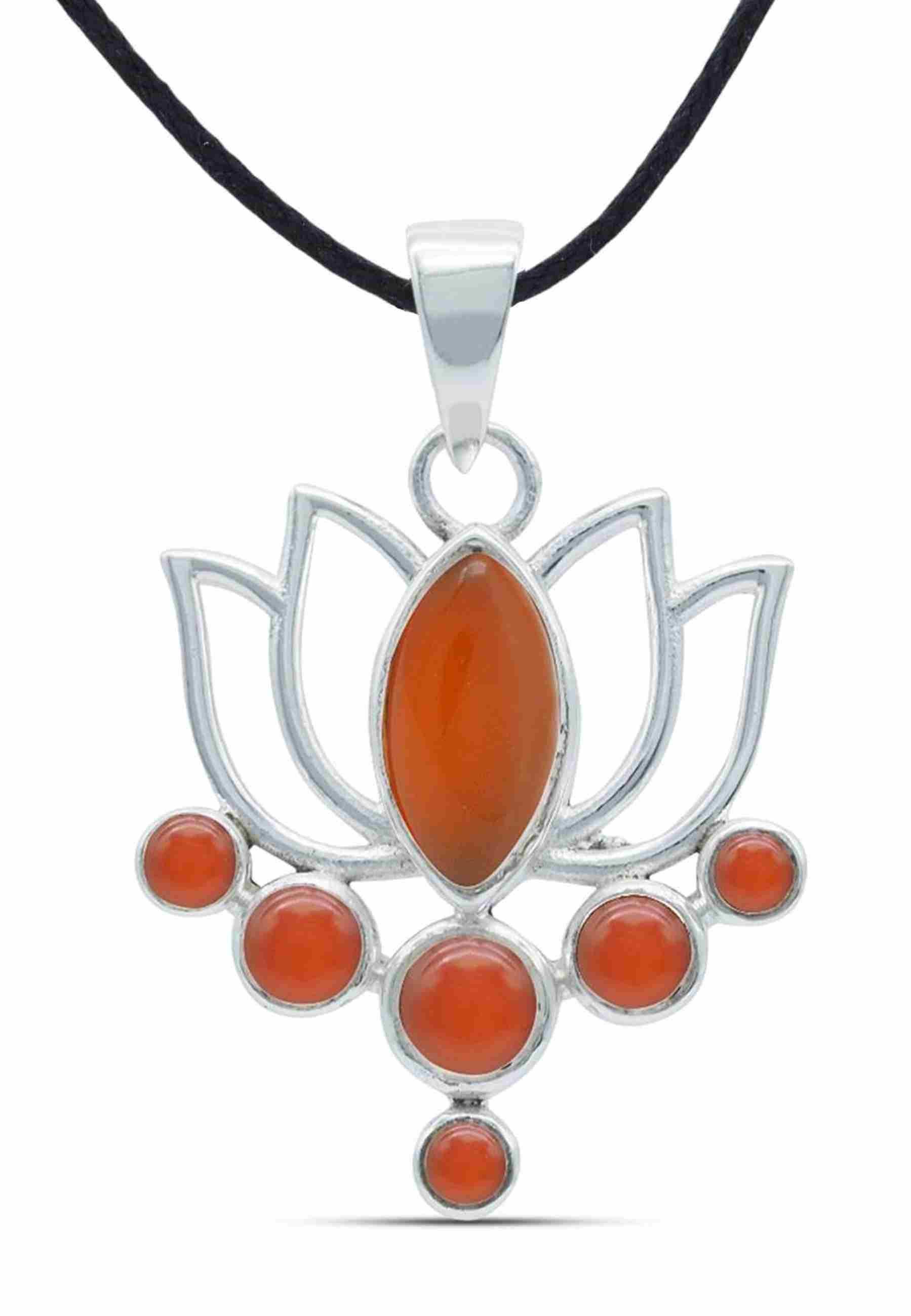 Entdecken Sie die zeitlose Eleganz unseres floral verzierten Kettenanhängers mit KarneolProduktmerkmale: