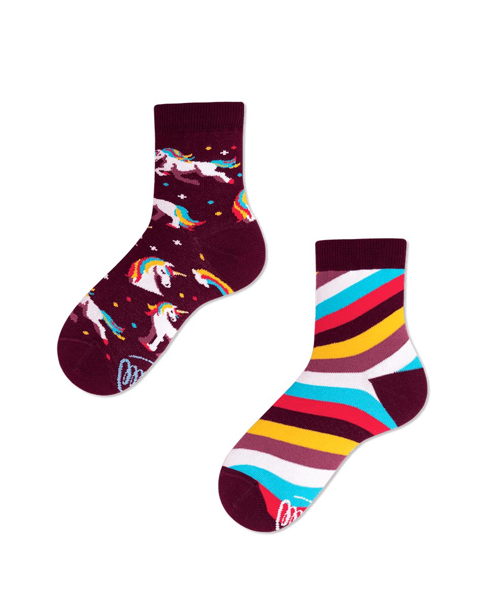 Many Mornings Kids the Unicorn Ihre Kleinen können Ihre Suche nach diesem fantastischen Fabeltier beenden, denn wir haben das berühmte Einhorn gefunden. Diese Kinder Socken machen glücklich. Typisch für Many Mornings, immer ein dismatching Paar. Die Socken gehören vom Thema her zusammen, sind aber unterschiedlich. Materialzusammensetzung: 80% Baumwolle, 15% Polyamid, 3% Elasthan, 2% Polyester