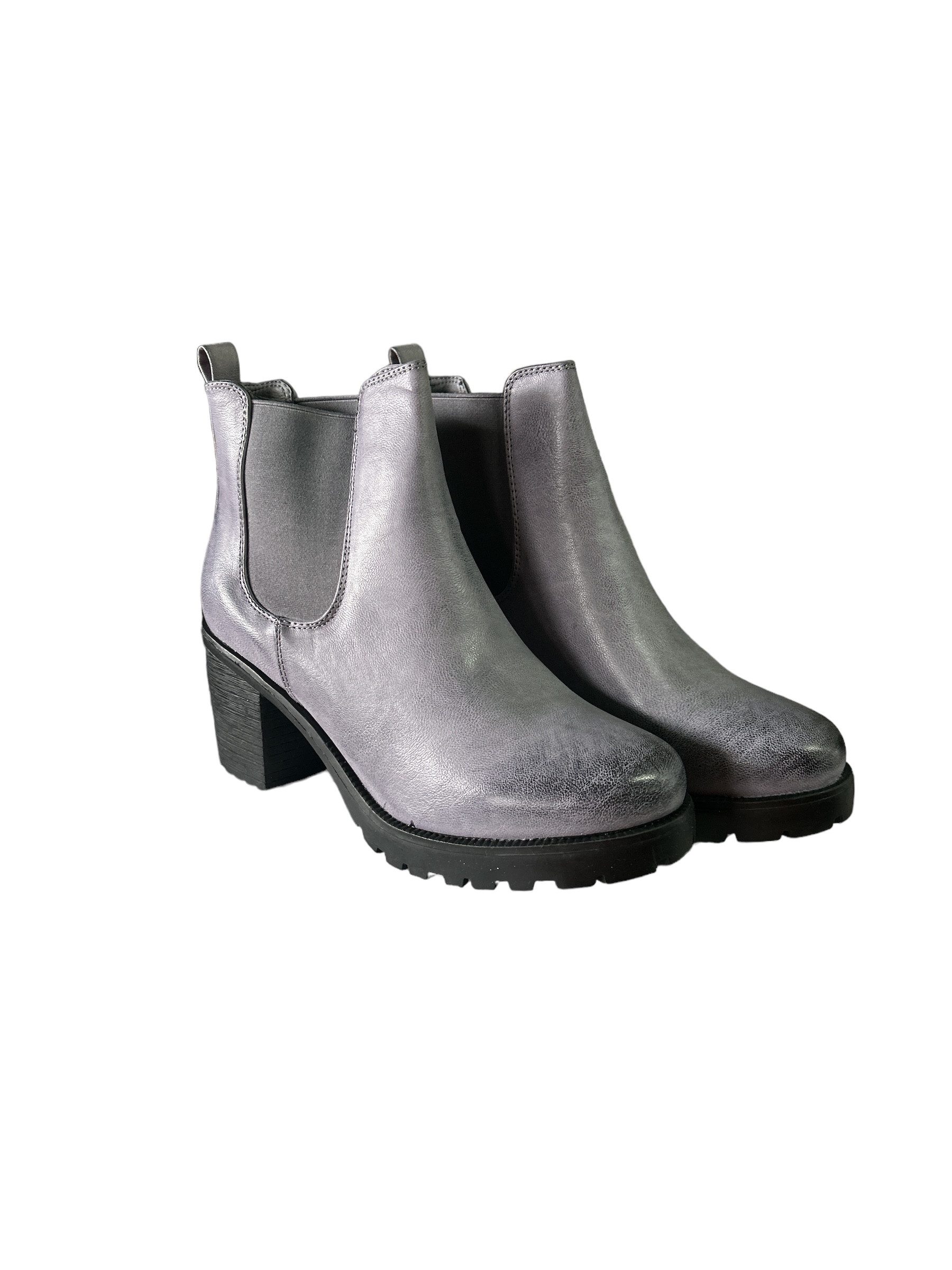 Stilvolle graue Chelsea-Stiefeletten mit 5 cm Absatz. Strapazierfähiges Kunstleder für langlebigen, eleganten Look. Elastische Einsätze und bequemer Tragekomfort. Vielseitig kombinierbar für verschiedene Outfits. Rutschfeste Sohle für sicheren Halt.