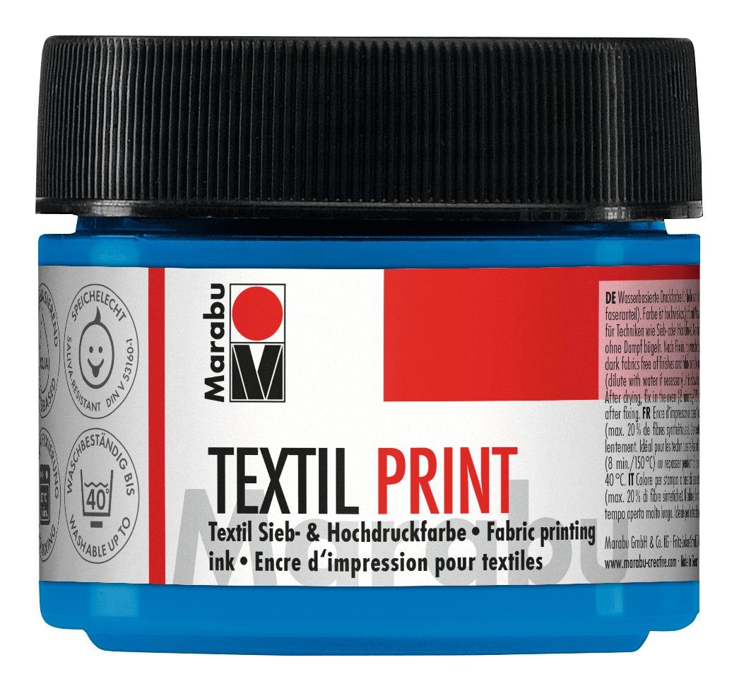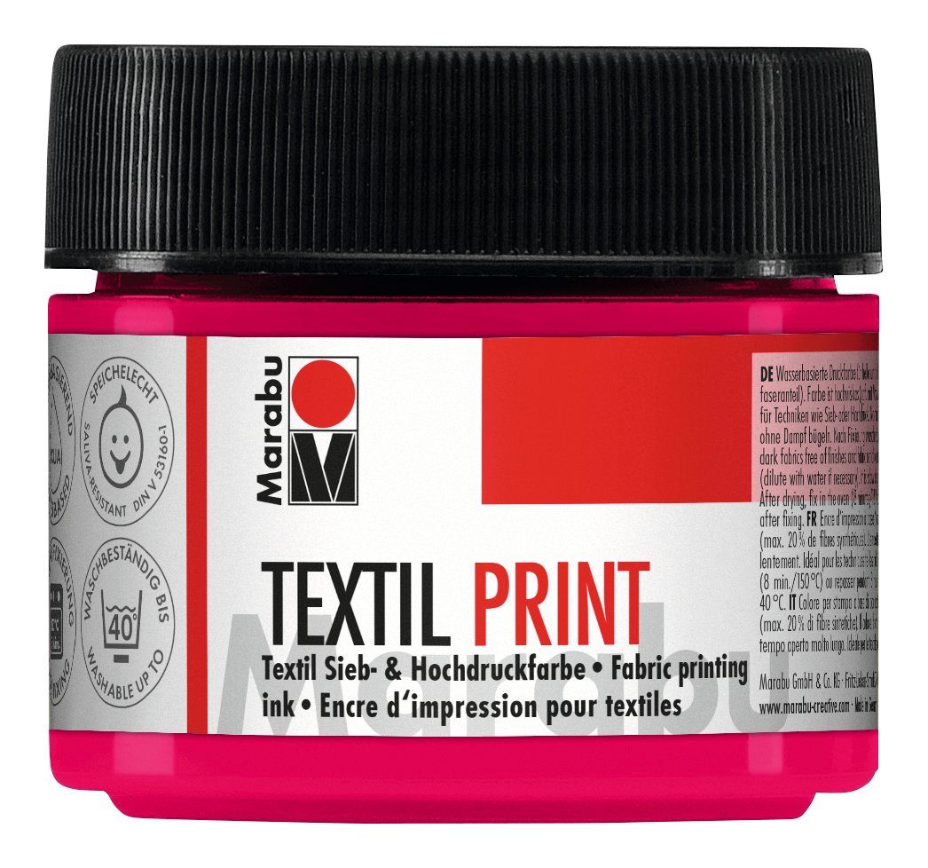 Diese Marabu Textil Print Textilfarbe ist eine brillante, matte Druckfarbe auf Wasserbasis und perfekt für den Hoch- und Siebdruck geeignet. Super für die Gestaltung von verschiedenen Textilien. Die Textilfarbe gut aufrühren und das Arbeitsmaterial nach Gebrauch gut reinigen.