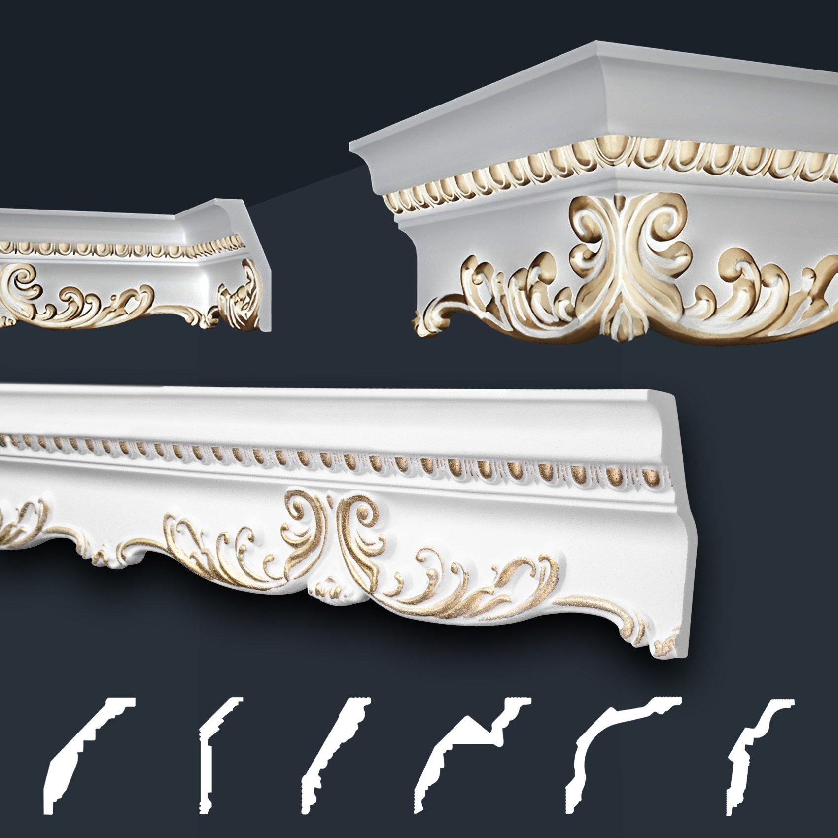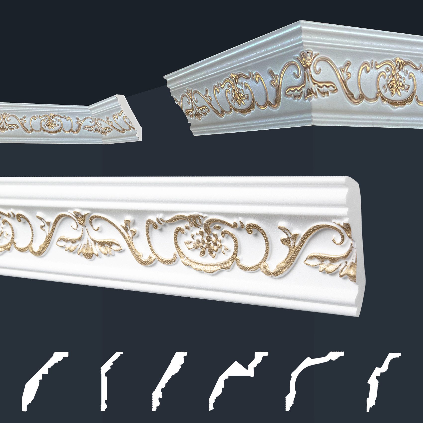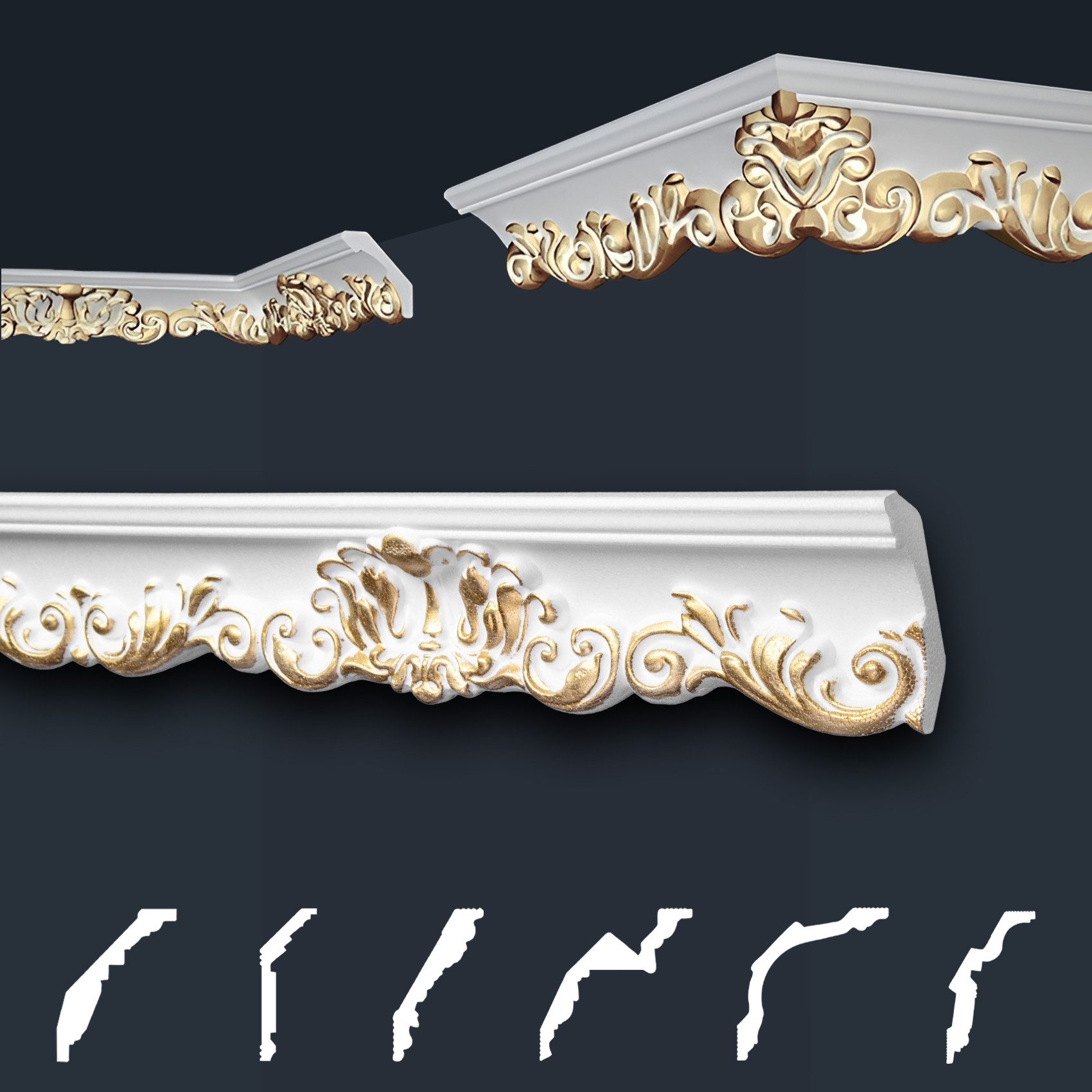 Unsere dekorativen Zierleisten mit gemusterter Oberfläche, ob in schlichtem Weiß oder in strahlendem Gold-, Silberfarbe, besprüht, bieten den perfekten Abschluss für Ihre Wandflächen. Sie sind vielseitig einsetzbar, super leicht und einfach anzubringen. Die formfesten Stuckleisten mit prachtvollen Verzierungen im klassischen Stil, zaubern mit Sicherheit einen WOW-Effekt in Ihre Räumlichkeiten und ermöglichen eine individuelle, luxuriöse Wandgestaltung. Unsaubere Tapetenübergänge, sowie Unebenheiten werden geschickt überdeckt und schaffen eine gepflegte und schöne Wohnatmosphäre. Der harmonische Übergang von Wand zur Decke ist aber nicht die einzige Verwendungsmöglichkeit. Unsere effektvollen Zierleisten bieten zahlreiche Gestaltungsmöglichkeiten, wie beispielsweise stillvolle Bild-, Wand- und Spiegelumrandungen.