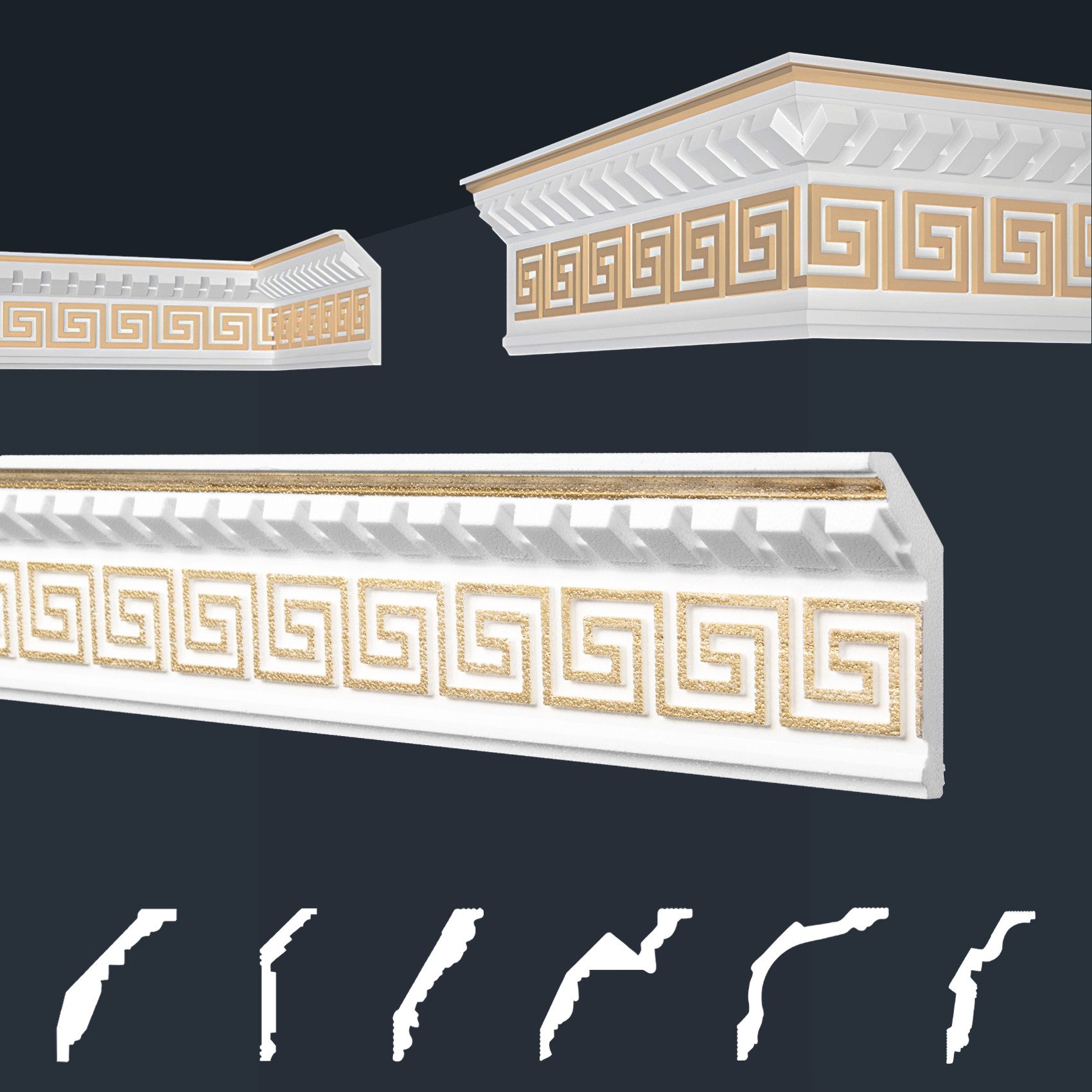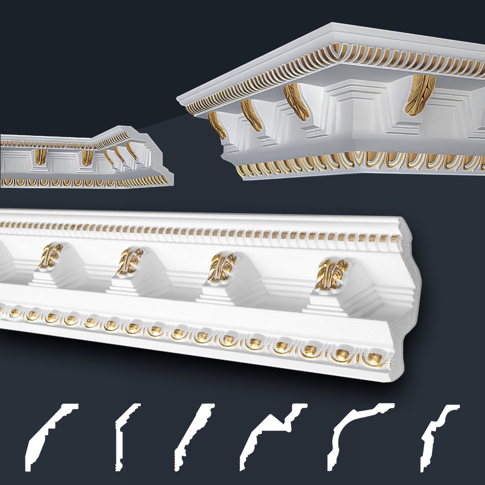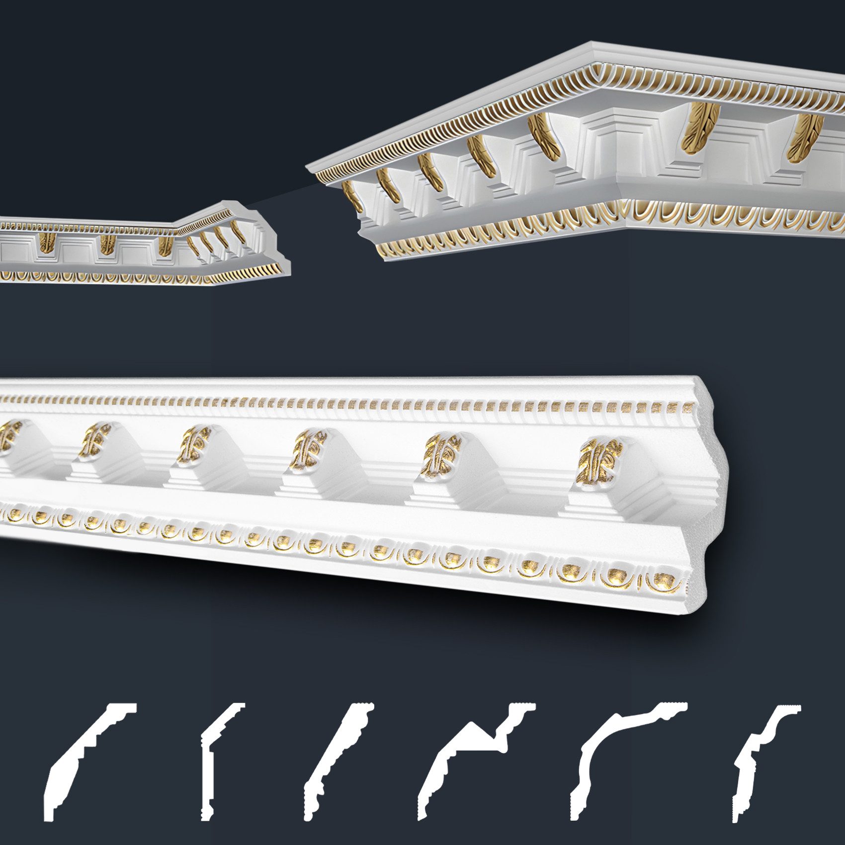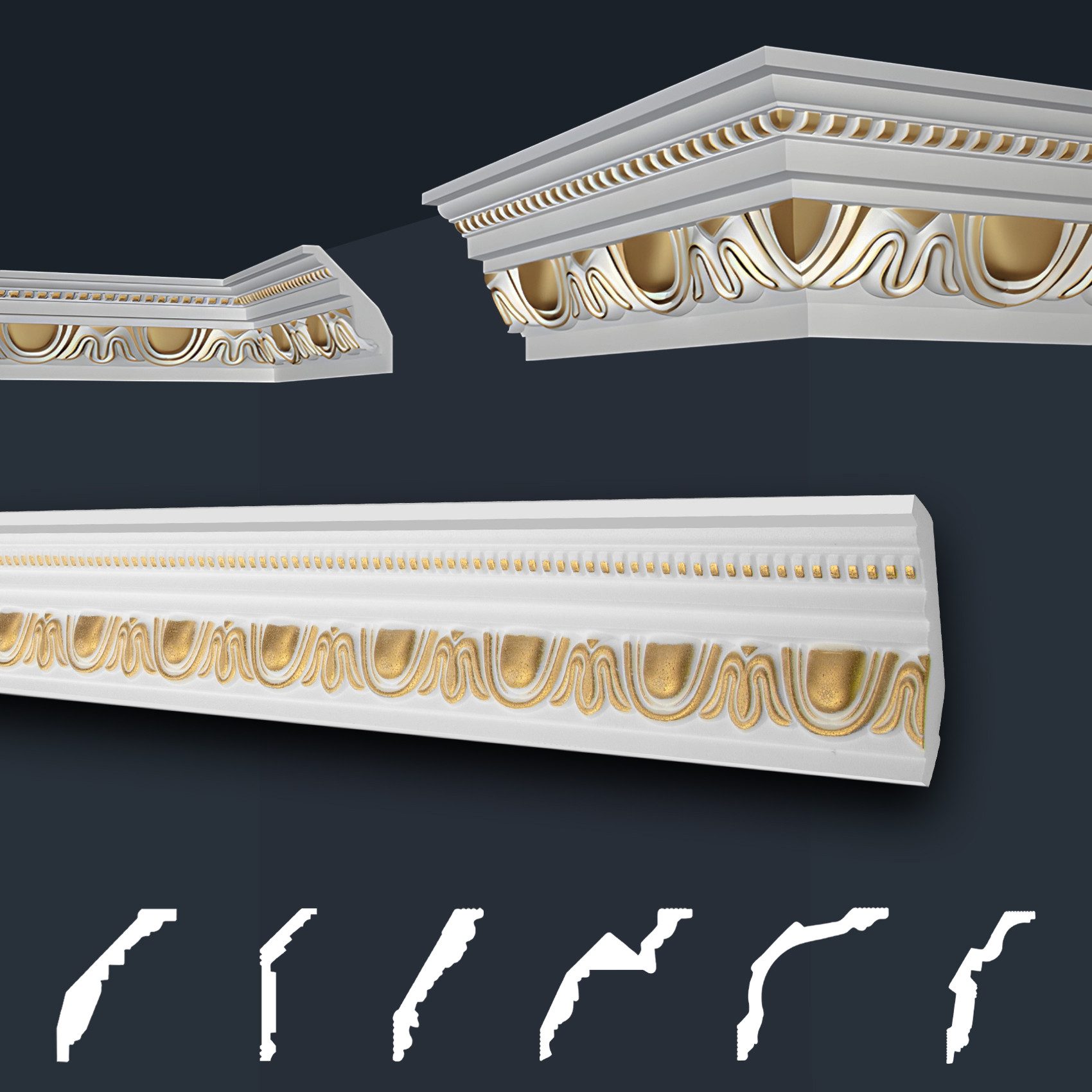 Unsere dekorativen Zierleisten mit gemusterter Oberfläche, ob in schlichtem Weiß oder in strahlendem Gold-, Silberfarbe, besprüht, bieten den perfekten Abschluss für Ihre Wandflächen. Sie sind vielseitig einsetzbar, super leicht und einfach anzubringen. Die formfesten Stuckleisten mit prachtvollen Verzierungen im klassischen Stil, zaubern mit Sicherheit einen WOW-Effekt in Ihre Räumlichkeiten und ermöglichen eine individuelle, luxuriöse Wandgestaltung. Unsaubere Tapetenübergänge, sowie Unebenheiten werden geschickt überdeckt und schaffen eine gepflegte und schöne Wohnatmosphäre. Der harmonische Übergang von Wand zur Decke ist aber nicht die einzige Verwendungsmöglichkeit. Unsere effektvollen Zierleisten bieten zahlreiche Gestaltungsmöglichkeiten, wie beispielsweise stillvolle Bild-, Wand- und Spiegelumrandungen.