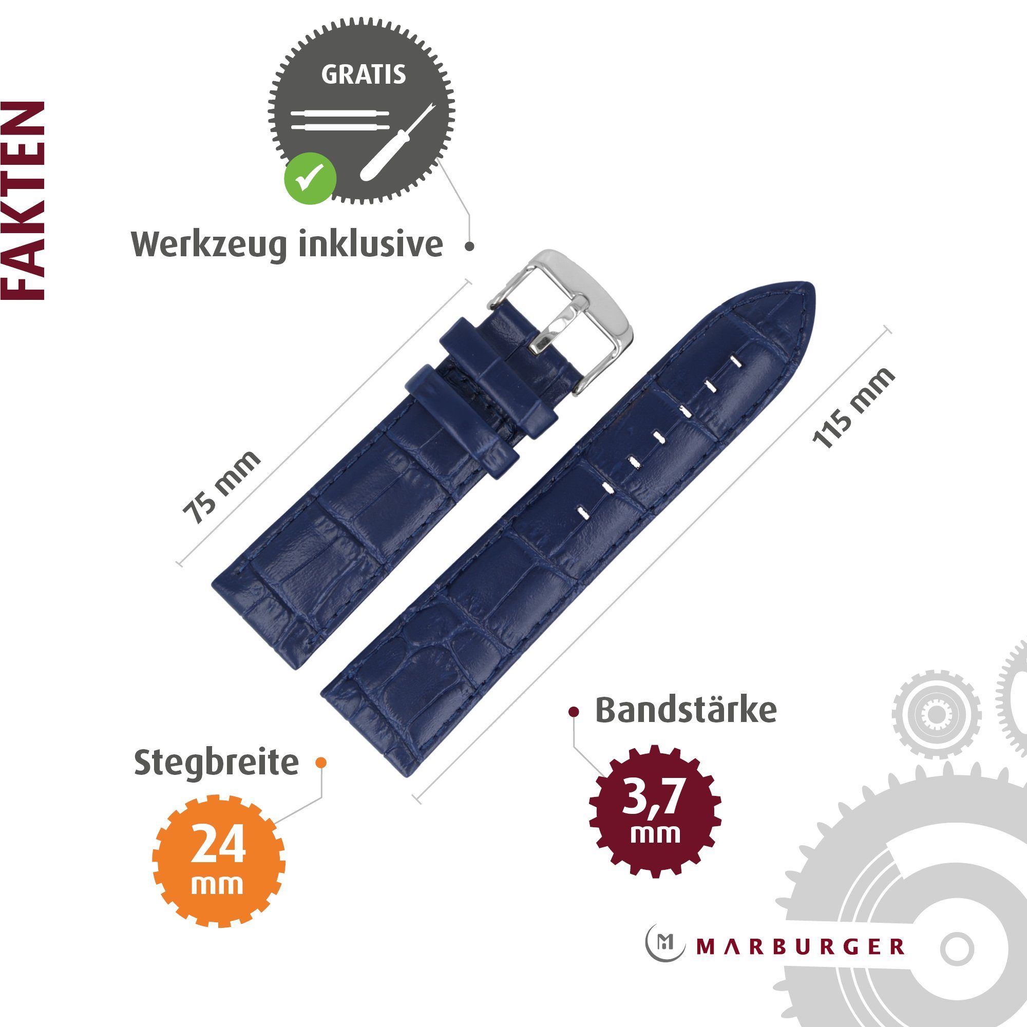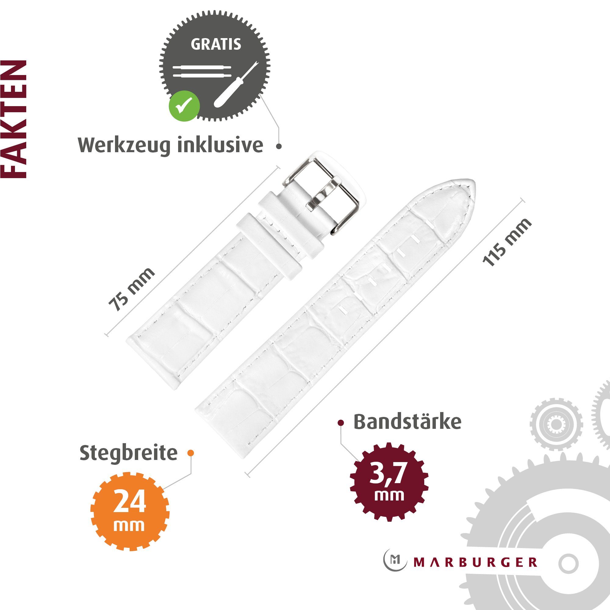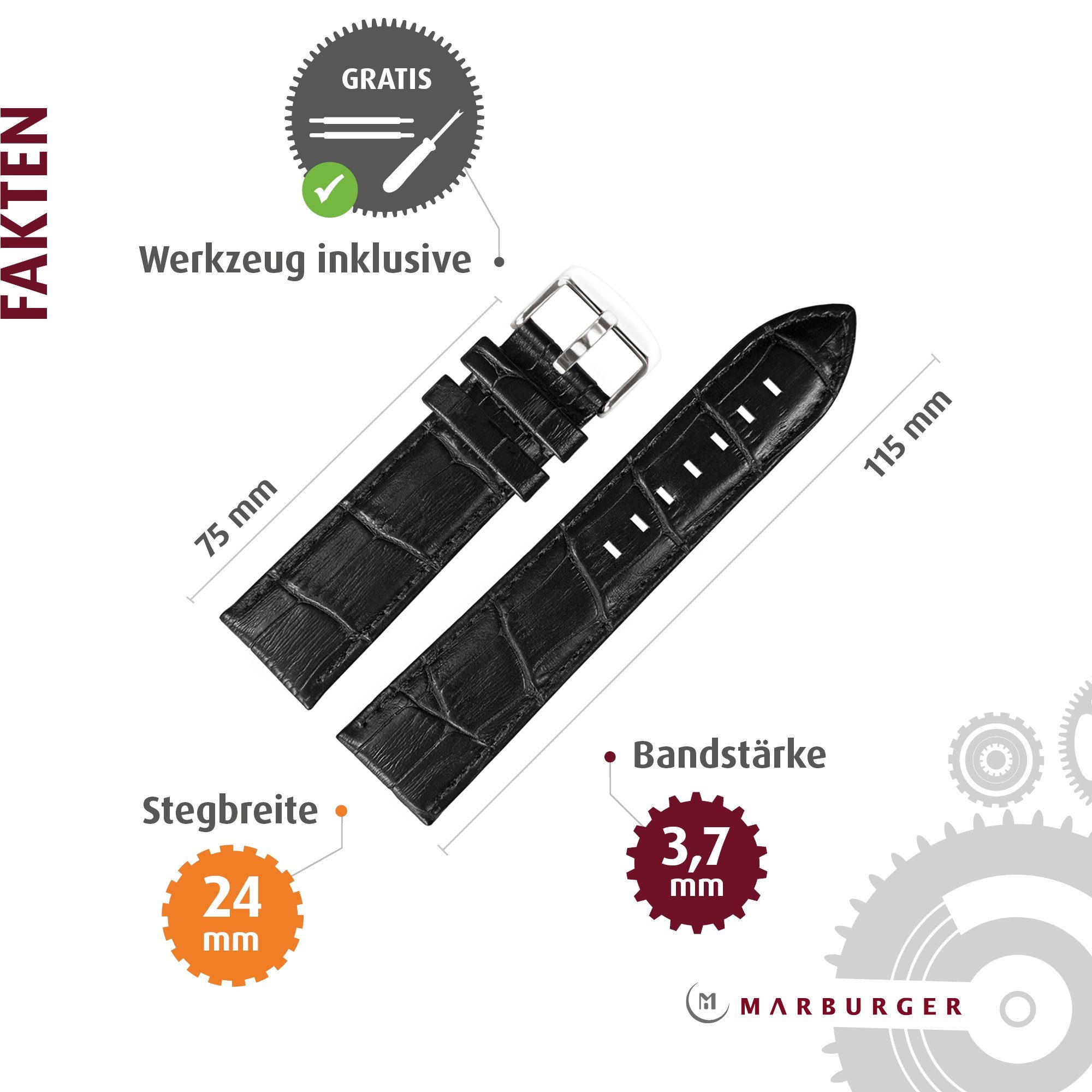 ABMESSUNGEN - Uhrband aus RINDSLEDER passend für Uhren mit einer Anstoßbreite 24 mm - Bandverlauf verjüngend 24mm auf 22mm