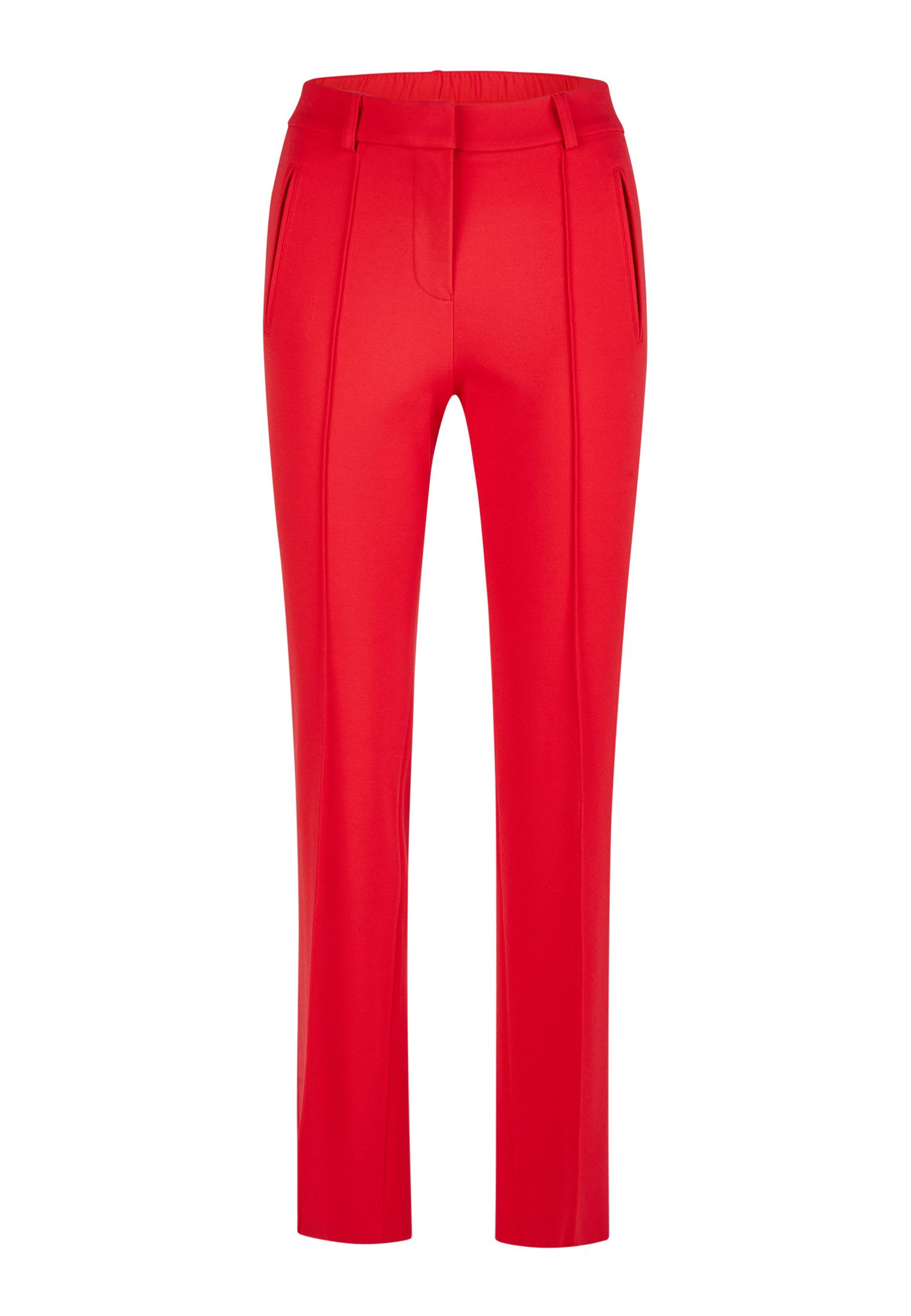 Erleben Sie die ultimative Mischung aus Stil und Bequemlichkeit mit der Flared Hose. Gefertigt aus dem gleichen edlen Konfektions-Jersey wie ihre Schwester, die Easy-Kick Hose, bietet auch dieses Modell einen angenehmen Stretch, der Bewegungsfreiheit garantiert. Die Hose präsentiert sich in einer schmalen Passform mit ausgestelltem Bein und einer modernen cropped Длина, die eine attraktive Figur zaubert. Der Verschluss in Herrenoptik mit Haken und Öse, die gesteppte Biese in der Vorderhose sowie die Paspeltaschen runden das Design elegant ab. Eine Hose, die sowohl im Alltag als auch zu besonderen Anlässen Ihre Garderobe bereichert.