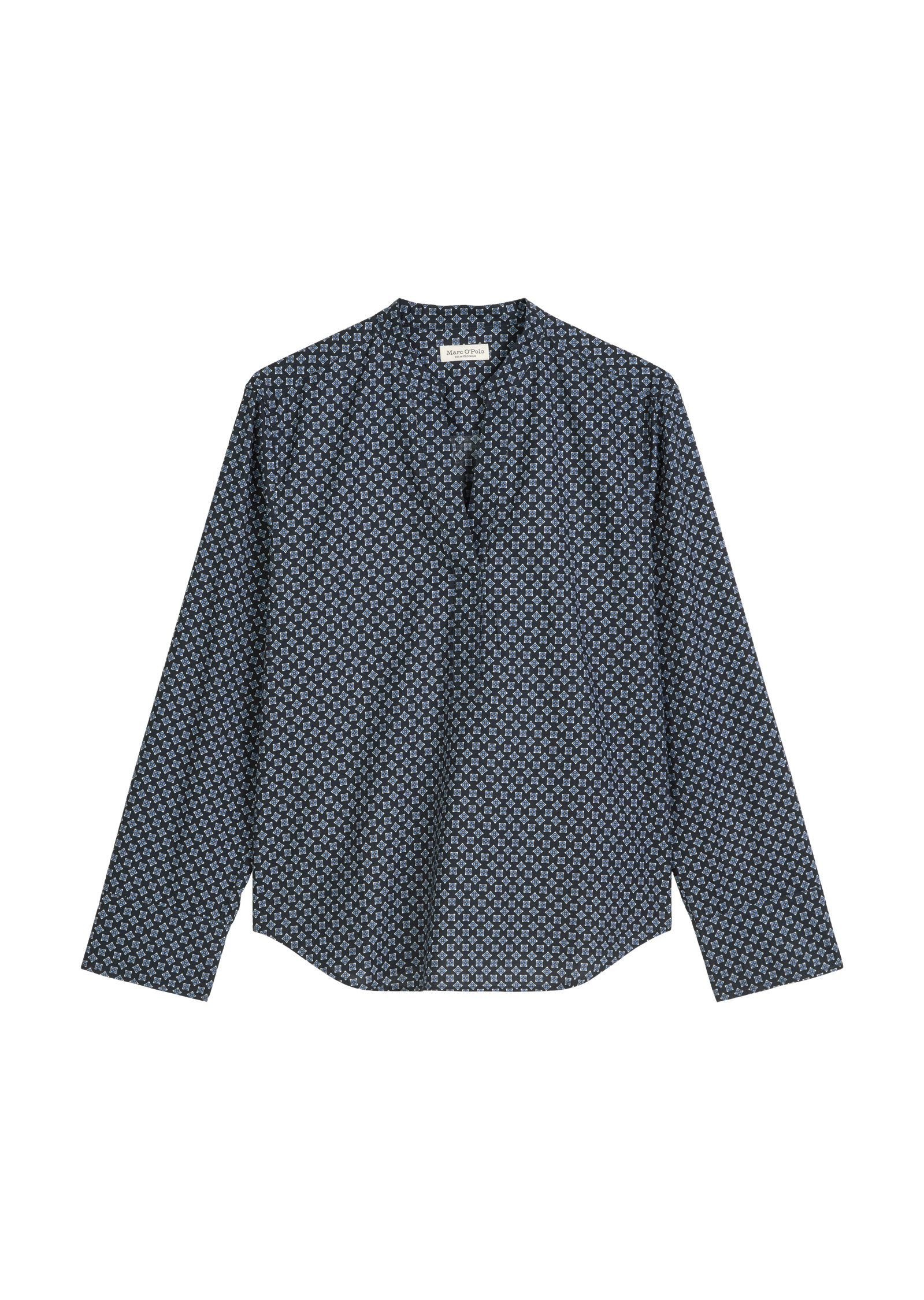 Sportlich & elegant: die Bluse mit modernem Allover-Print aus reiner, zertifizierter Bio-Baumwolle in glatter, leichter Papertouch-Qualität. Lässiger, leicht ausgestellter Regular Fit mit Stehkragen, V-Ausschnitt mit Blenden-Verarbeitung, klassischen Blusenärmeln mit breiten Manschetten und abgerundeter Saumlinie. Für den entspannten Freizeitlook zur Lieblingsjeans, Sneakern und Cardigan kombinieren.