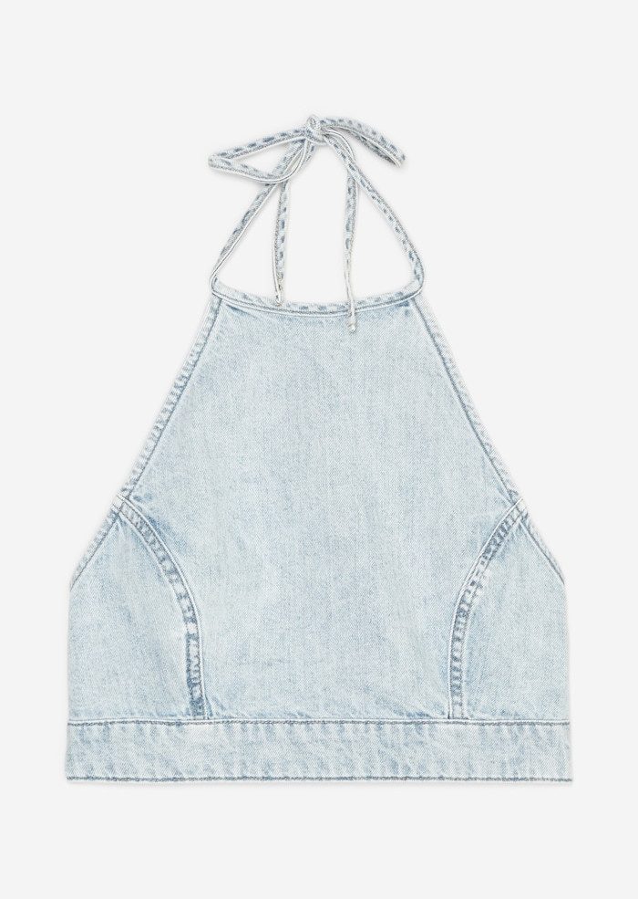 Das Neckholder-Shirt von Marc O\'Polo Denim bringt den angesagten 90er-Style in Deine Sommergarderobe und ist ein echtes Must-Have für die kommende Saison. Der figurnahe, rückenfreie Schnitt und das authentische Denim-Material ohne Elasthan sorgen für einen einzigartigen Look, der Leichtigkeit und Coolness ausstrahlt. Das Bindeband im Nacken und der praktische Häkchen-Verschluss am Unterbrustband setzen das Dekolleté perfekt in Szene und verleihen dem Shirt eine feminine Silhouette.Das vielseitige Neckholder-Shirt ist ein echter Allrounder: Kombiniere es mit einer fließenden High-Waist-Hose für einen eleganten Abend-Look oder mit High-Waist-Jeans und Sneakers für einen lässigen City-Style. Der hohe Rundhalsausschnitt und die schlichte Denim-Optik machen es zum Highlight in jedem Outfit. Marc O\'Polo Denim verfolgt das Ziel, ein nachhaltigeres Jeans-Produkt zu schaffen – von der Wahl der Rohstoffe bis hin zu ressourcenschonenden Färbe- und Waschverfahren. So leistest auch Du mit diesem Trendteil einen Beitrag zur verantwortungsvollen Modewelt.Highlights: Authentische, gewaschene Denim-Qualität ohne Elasthan für eine natürliche, robuste Haptik Slim-Fit und rückenfreier Neckholder-Schnitt für einen femininen Look Hoher Rundhalsausschnitt mit Bindeband im Nacken und Häkchen-Verschluss Vielseitig kombinierbar – für elegante und legere Outfits gleichermaßen geeignet Teil der nachhaltigen Jeans-Kollektion von Marc O\'Polo DenimErlebe die coole Eleganz des Marc O\'Polo Denim Neckholder-Shirts und zeige Deinen Style!