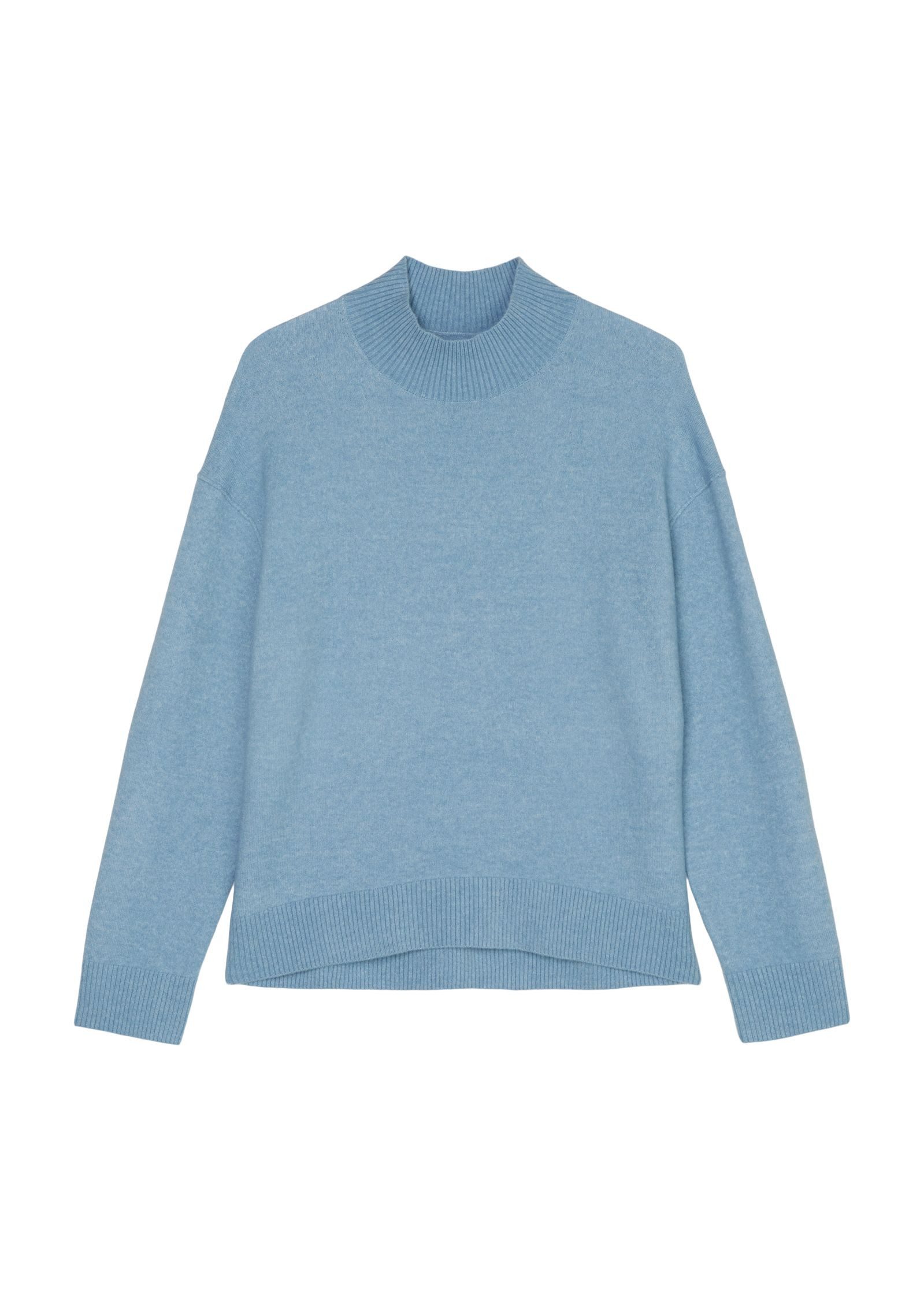 Mit dem Strickpullover von Marc O'Polo DENIM stellst du im Handumdrehen ein neues Outfit zusammen. Der Stehkragen steht, wie der Name bereits verrät, gerade nach oben ohne umgeschlagen zu werden. Dadurch eignet er sich vor allem für schicke und toughe Outfits. Die langen Ärmel enden in einem Rippbündchen, das für guten Sitz sorgt.