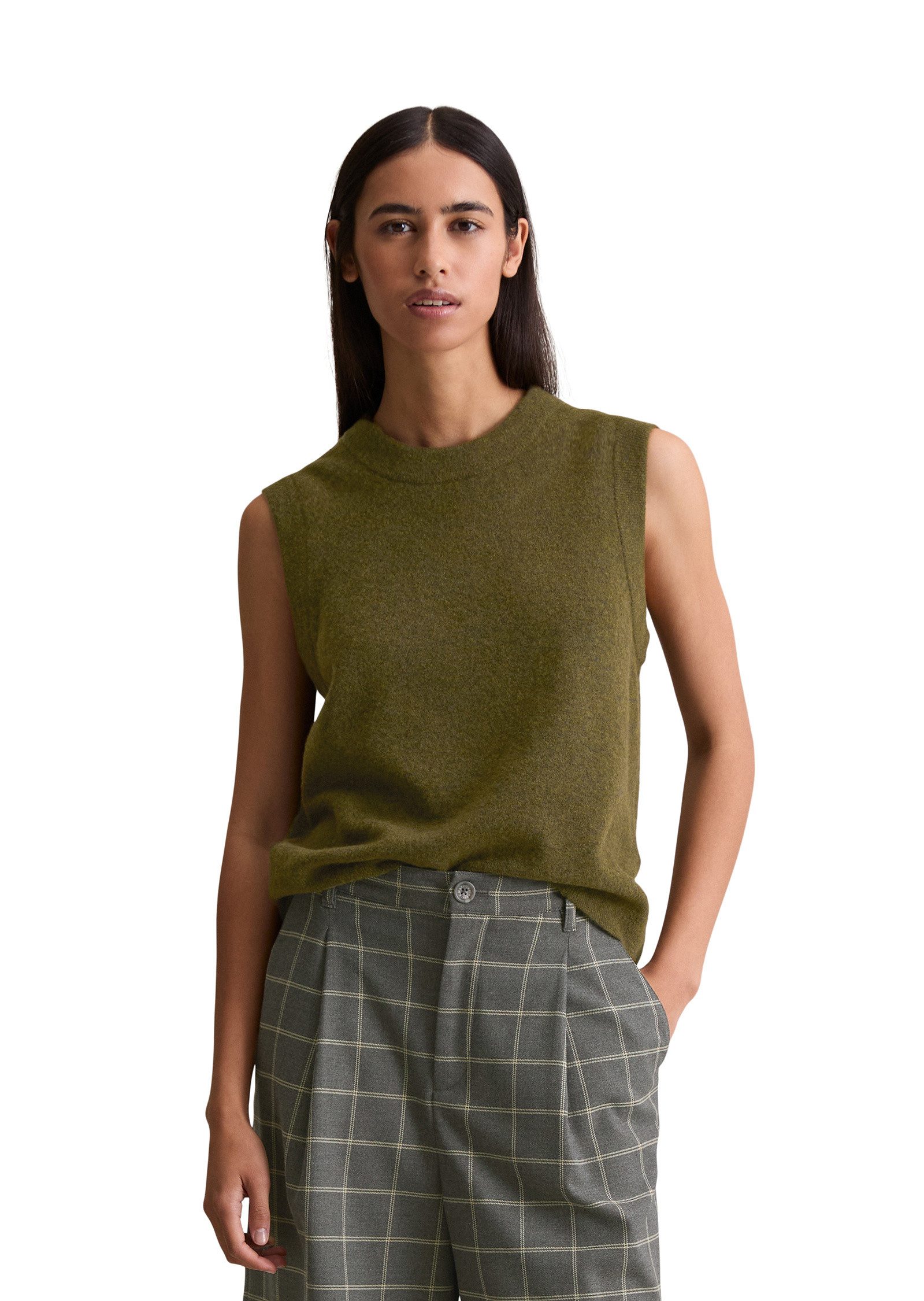 Pullunder haben jeden Menge Vorzüge. Sie sind vielseitig kombinierbar, immer schick, passen zu allen Jeans im Kleiderschrank und sind die perfekten Layering-Partner. Außerdem sind sie immer eine Spur aufregender als langarmige Modelle. Dieser clean designte ärmellose Pullover von Marc O’Polo DENIM aus einem feinen, hochwertigen Schurwolle-Mix-Garn gestrickt und hat ein weiches, glattes Maschenbild. Er hat einen klassischen Regular Fit und Rippstrickbündchen am Saum. Edel: die "französische Schulter" - hier liegt die Schulternaht nicht am höchsten Punkt, sondern ist lässig nach hinten versetzt.