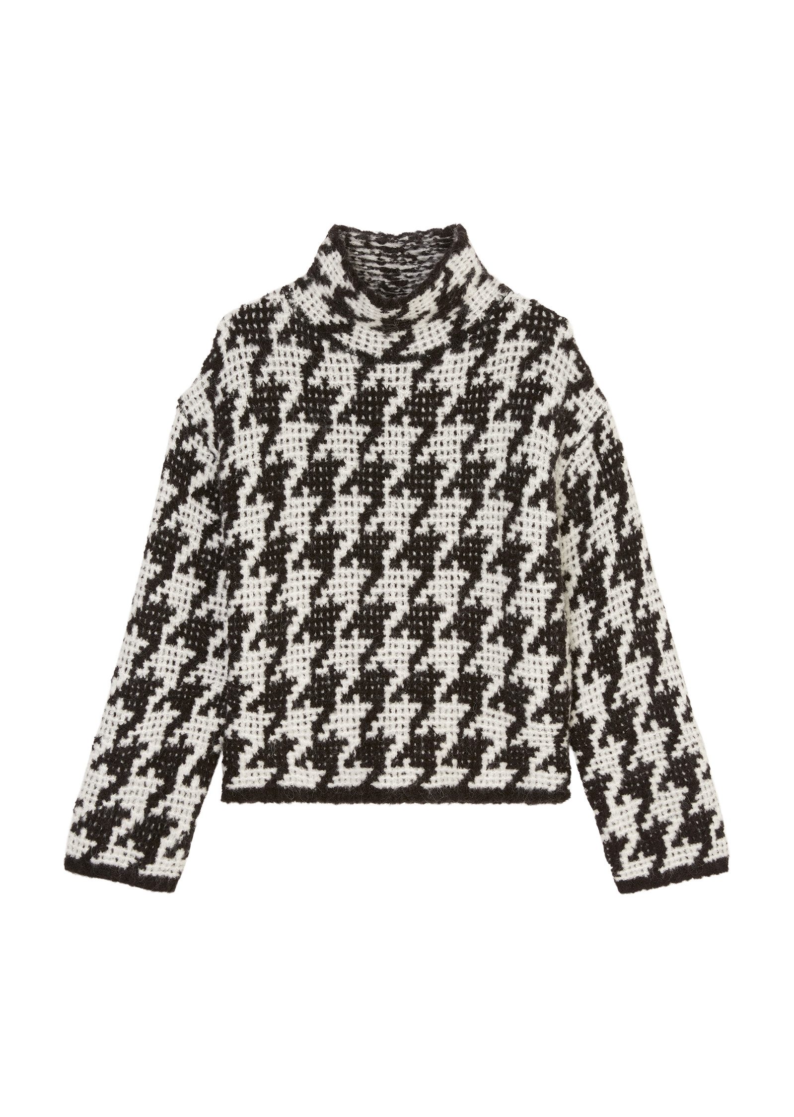 Der Musterklassiker Hahnentritt ist zurück und präsentiert sich diesmal in einer beeindruckenden XL-Размер auf einem Strickpullover. Dieses Modell besticht nicht nur durch sein markantes Bouclégarn, sondern auch durch die hochwertige Mischung aus Schurwolle und Alpaka. Der Schnitt ist locker und kastig, mit stark überschnittenen Schultern und einem hohen Stehkragen, was dem Pullover eine moderne und zugleich gemütliche Note verleiht. Kombiniere ihn mit einer schwarzen Flare-Jeans und Du hast einen Look, der sowohl stilvoll als auch bequem ist.Dieser langärmelige Pullover ist das perfekte Kleidungsstück für einen Casual-Look, der sowohl in Sachen Optik als auch in Sachen Tragekomfort überzeugt. Das Hahnentritt-Design verleiht Deinem Outfit eine elegante Note, während das Bouclégarn für eine besondere Struktur und Haptik sorgt. Egal, ob Du einen entspannten Tag zu Hause verbringst oder Dich mit Freunden triffst, dieser Pullover ist immer die richtige Wahl.Die Materialzusammensetzung dieses Pullovers ist ein weiteres Highlight. Mit 42% Schurwolle, 25% Polyacryl, 19% Alpaka, 13% Polyamid und 1% Elasthan bietet er Dir nicht nur Wärme und Komfort, sondern auch eine hervorragende Passform und Langlebigkeit. Diese hochwertige Mischung macht den Pullover besonders angenehm zu tragen und sorgt dafür, dass Du Dich den ganzen Tag über wohlfühlst.Der Hahnentritt-Pullover sieht nicht nur attraktiv aus, sondern lädt gleichermaßen zum Wohlfühlen ein. Mit diesem ebenso hübschen wie bequemen Kleidungsstück steht einem tollen Outfit nichts mehr im Wege. Ob Du ihn zur Arbeit oder in Deiner Freizeit trägst, Du wirst immer stilvoll und komfortabel gekleidet sein. Lass Dich von der Kombination aus klassischem Design und modernen Akzenten begeistern. Musterklassiker Hahnentritt in beeindruckender XL-Размер Hochwertige Mischung aus Schurwolle und Alpaka Lockerer, kastiger Schnitt mit hohem Stehkragen Perfekt für einen stilvollen Casual-Look Materialzusammensetzung: 42% Schurwolle, 25% Polyacryl, 19% Alpaka, 13% Polyamid, 1% Elasthan