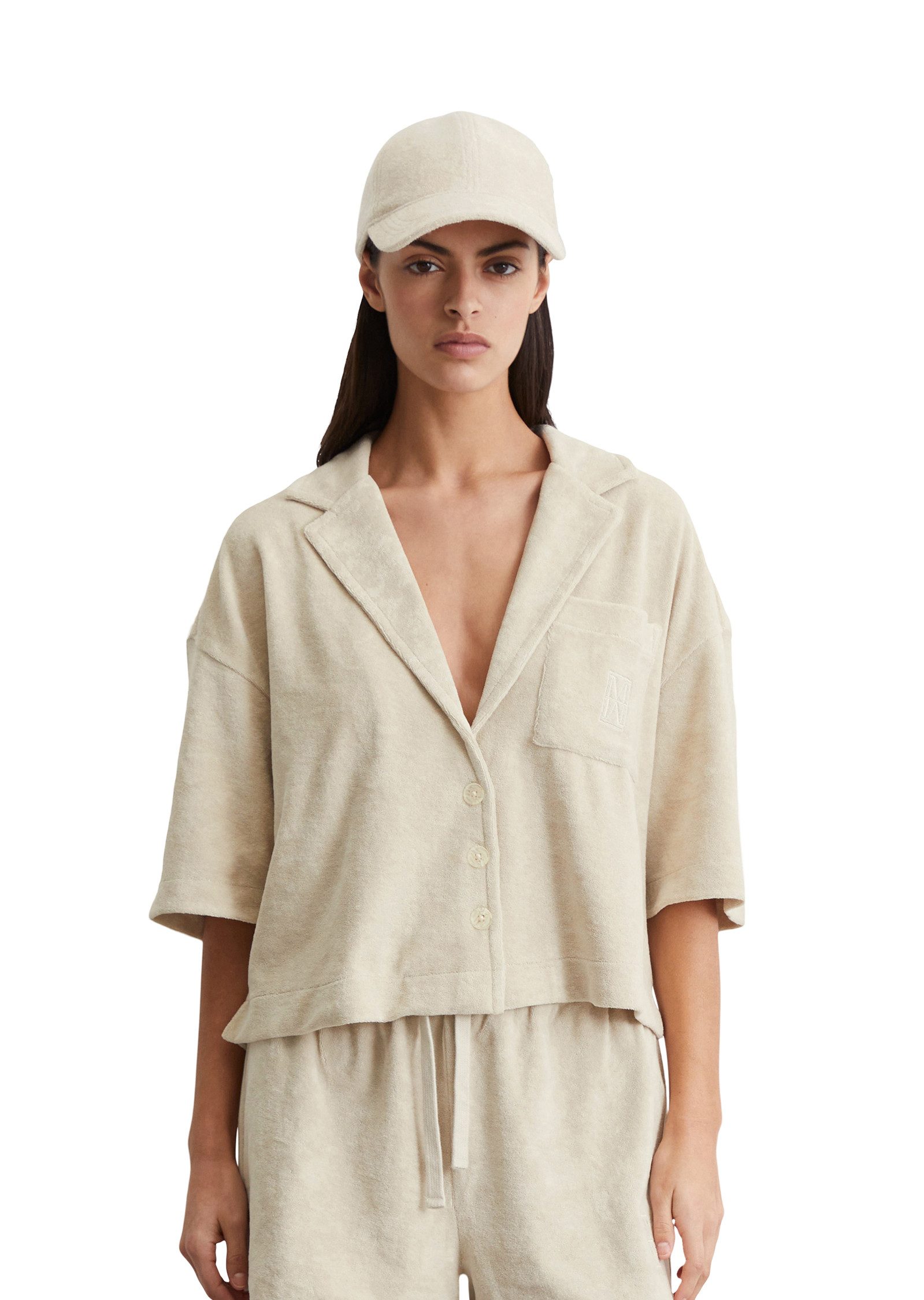 Gesucht und gefunden: Schau dir das Kurzarmshirt von Marc O'Polo mal genauer an. Der Reverskragen ist ein Kragen, der fließend in das Revers übergeht und dadurch sowohl seriös aussieht als auch deinen Oberkörper streckt. Dieses Shirt ist locker geschnitten, sodass der Oberkörper locker betont wird.