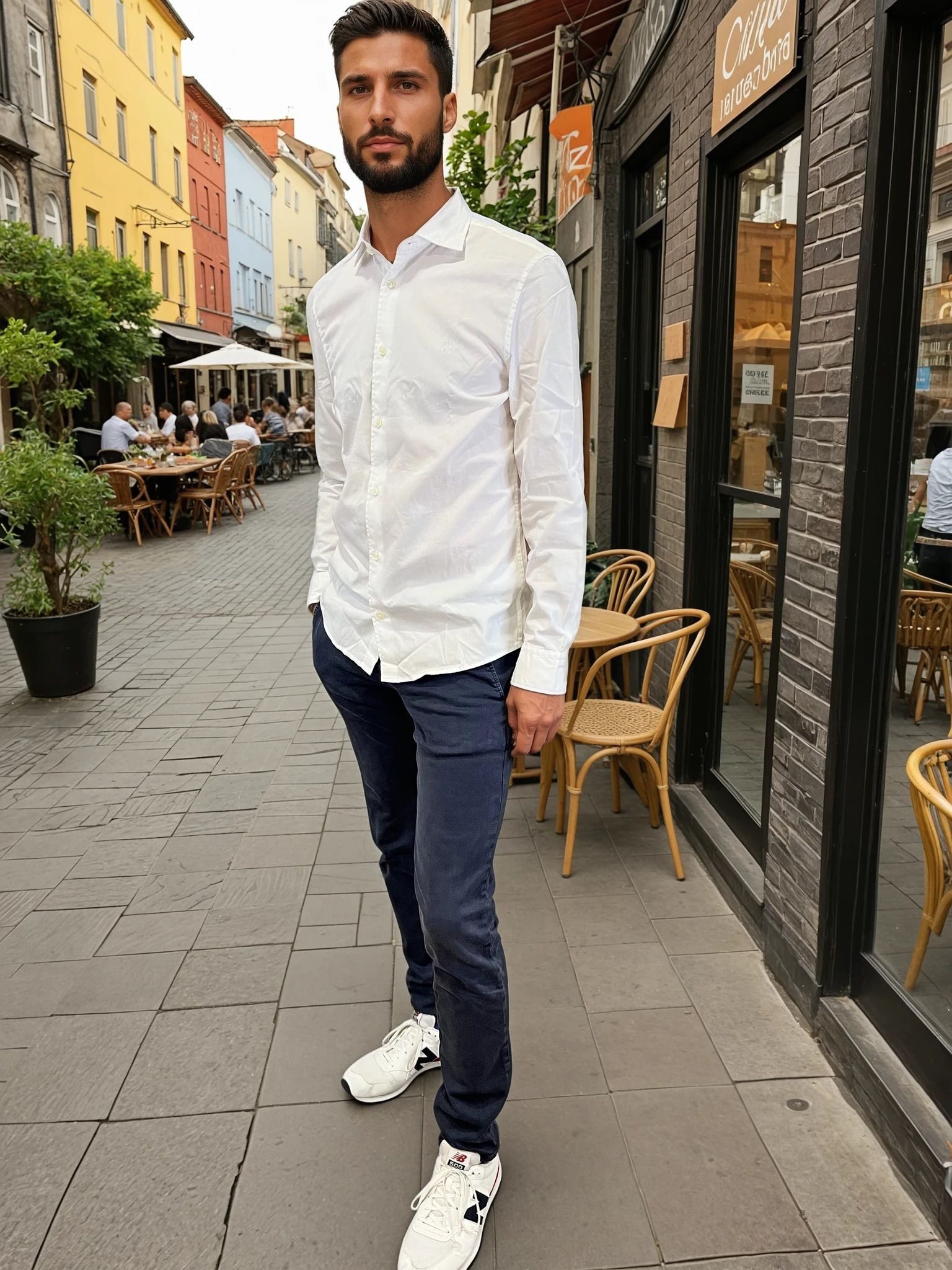 Mit einer schicken Jeans oder einer schmalen Chinohose und Schnürschuhen ist das Hemd gut fürs Büro geeignet. Trag es solo oder lass den Kragen unter einem Pullover herausschauen.
