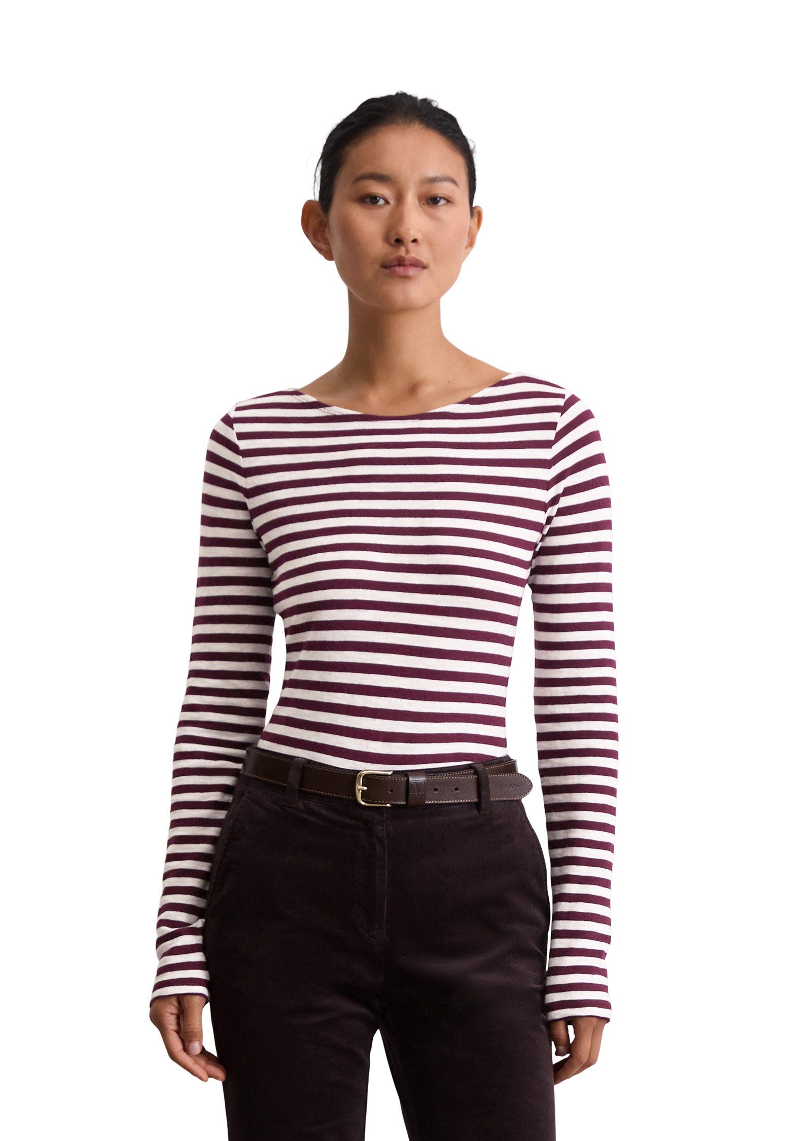 Es ist DAS Essential des klassischen French Chic und verbindet wie kein anderes Kleidungsstück Eleganz und Lässigkeit: das gestreifte Longsleeve im Breton-Stil. Nordisch interpretiert mit femininem U-Boot-Ausschnitt und langen, schmalen Ärmeln. Der Griff: weich, locker und körnig zugleich. Das geringelte Oberteil lässt sich super easy kombinieren. Tipp: Klassisch zu schmalen Jeans, Loafern und Trenchcoat. Im Stilbruch: zu Rock und derben Boots.