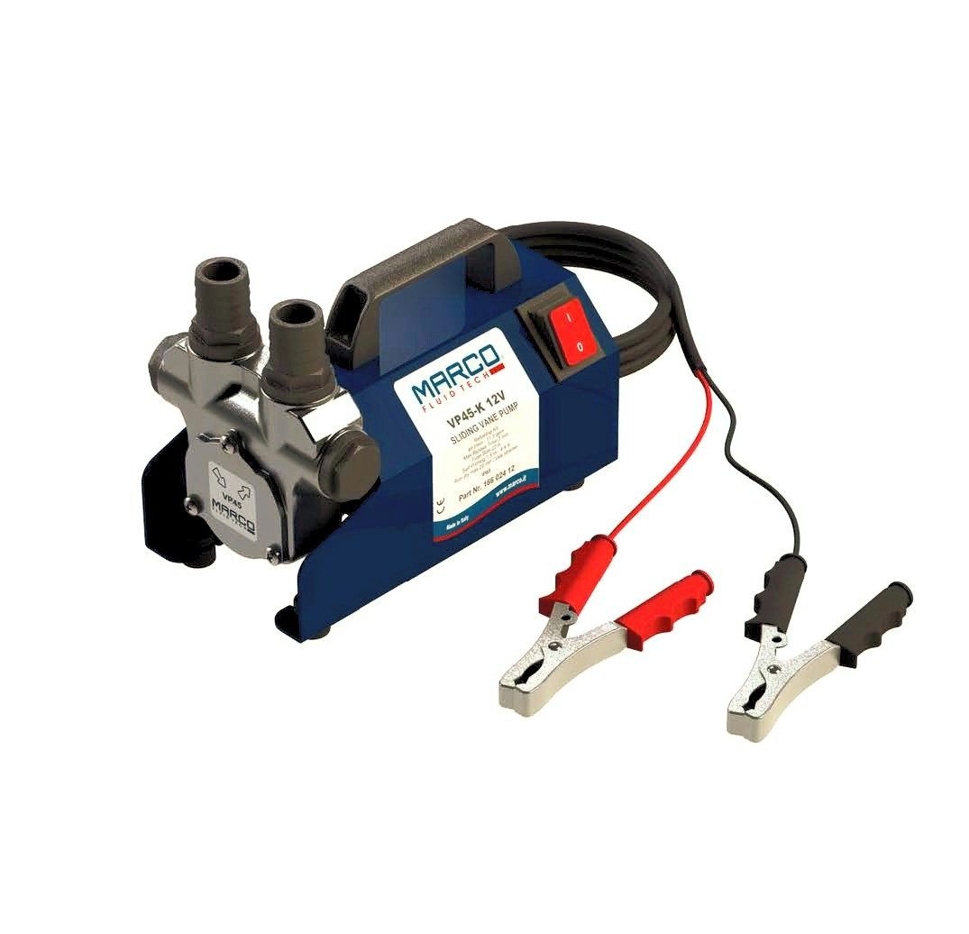 Tragbares kompaktes Flügelzellen-Betankungsset, einfach zu bedienen und zu transportieren. Dieselbetankungs-Montagesatz komplett mit Flügelzellenpumpe mit integriertem Bypass-Ventil und Batterieklemmen. Das Kit enthält außerdem eine Pistole mit Spender, einen 2 m Saugschlauch mit Filter und einen 3 m Druckschlauch für einfaches Umsetzen und autonomen Betrieb an der gewünschten Stelle. Sie kann mit jeder Batterie mit einer universellen Spannung von 12 V betrieben werden.Basierend auf einer professionellen selbstansaugenden kleinen elektrischen Flügelzellenpumpe. Die Pumpe wird mit einem Gehäuse mit eingebautem Schalter geliefert. Die Pumpe kann aus dem Gehäuse entnommen und als Einbaueinheit verwendet werden. Pumpenkörper aus vernickeltem Messing, Welle aus Edelstahl. Die Pumpe ist für Dieselkraftstoff und Wasser bis 35 Grad Celsius ausgelegt. Der Bausatz war ursprünglich zum Befüllen von Dieselkraftstoff vorgesehen. Ideal zum Ablassen von öligem Bilgenwasser und Abwasser aus jedem Schiffstyp. Die Pumpe kann in vielen Bereichen eingesetzt werden, zum Beispiel: auf Schiffen und Booten, Anhängern und Wohnmobilen, Baumaschinen, Landwirtschaft, Industrie, Haushalten usw. Professionelles Engagement und kontinuierliches Wachstum sind die Grundlage der Erfahrung, auf der MARCO SPA basiert. Gegründet. basierend. basierend. fast 30 Jahre. Sie wurde 1970 von Giovanni Marco Franceschini gegründet und ist heute weltweit führend in der Qualität kleiner Elektropumpen auf höchstem Niveau. Die legendäre Zuverlässigkeit macht Marco-Produkte dort gefragt, wo kein Risiko durch Preiskompromisse besteht: See, Wissenschaft, Применитьung, Straßentransport. * 100% made in Italy * - das Paket enthält keine Billigimporte aus Fernost.