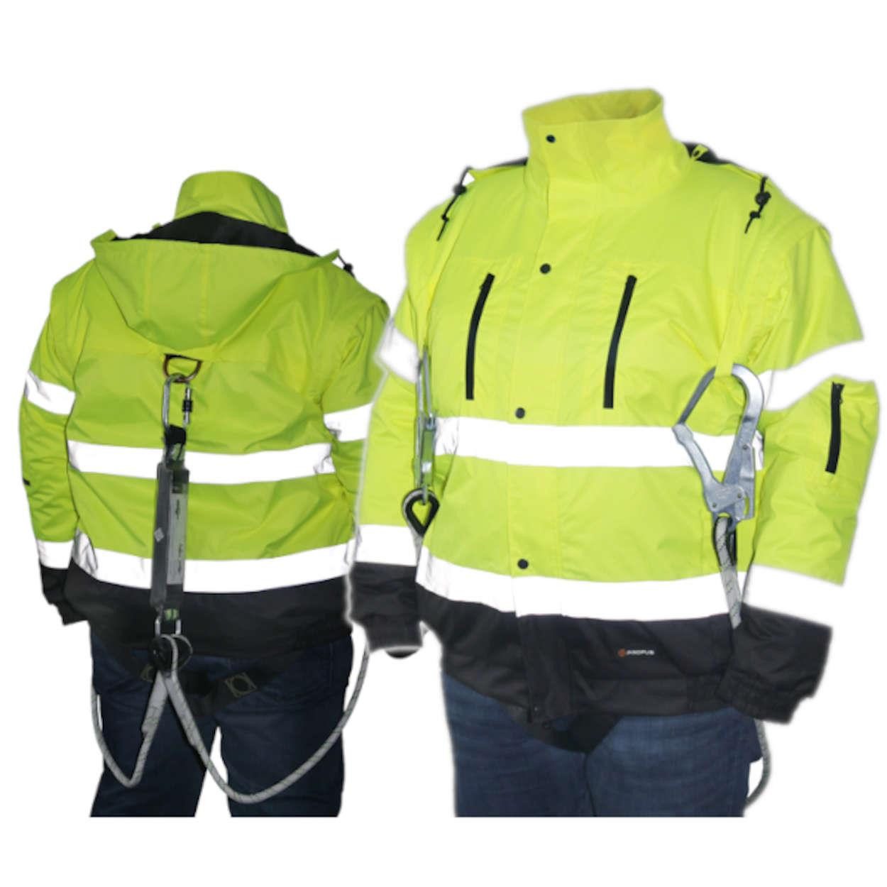 Warnjacke KARDIF FLC vom Typ Bomber Die Warnjacke KARDIF vom Typ Bomber ist ein Bestseller auf dem Markt, der sich bei Unternehmen, die die Vielseitigkeit des Produkts schätzen, großer Beliebtheit erfreut. Dank ihrer Konstruktion kann diese Arbeitsjacke bei fast allen Wetterbedingungen eingesetzt werden. Sowohl für kalte als auch für sonnige Tage Es ist eine ideale Jacke für die Arbeit bei schlechtem Wetter und in den kälteren Monaten für Personen, die unter Bedingungen arbeiten, bei denen eine gute Sichtbarkeit des Mitarbeiters sowohl tagsüber (bei ungünstigen Wetterbedingungen) als auch nachts erforderlich ist. Sie kann natürlich auch als normale Schutzjacke verwendet werden, zumal sie aus wasserdichtem Material gefertigt, wattiert und in reflektierenden Farben gehalten ist. Darüber hinaus verfügt sie über zahlreiche Taschen, was für die Aufbewahrung von Handwerkzeugen äußerst praktisch ist. Im Frühjahr kann die Jacke als Weste getragen werden, da die Ärmel, die Kapuze und das Innenfutter aus Fleece abgenommen werden können, das auch separat verwendet werden kann. Anwendung: Die reflektierende Jacke KARDIF dient zum Schutz des Arbeitnehmers bei allen Arten von Tätigkeiten in feuchter Umgebung, also bei Straßen, Bau und Gartenarbeiten. Die Jacke wird besonders in Situationen empfohlen, in denen die Anwesenheit einer Person visuell signalisiert werden muss, also bei Arbeiten sowohl bei Tageslicht als auch bei Nacht, insbesondere bei schlechten Sichtverhältnissen. Produkteigenschaften: • Oberflächenmaterial: 300D Oxford Polyester, PU-beschichtet, 190 g/m², Wassersäule: 2000 mm/m² • Futter: eigenständiger Fleece, 240 g/m² • Warnjacke, wärmend, zweifarbig, Pilotenjacke • Zweiwege-Reißverschluss mit Druckknopfleiste verdeckt • Elastischer Saum am unteren Rand • Abnehmbare Ärmel, abnehmbare Kapuze, abnehmbarer Fleece • Außenfächer mit Reißverschluss, zusätzliches Handyfach, Ärmelfach • Erhältlich in Gelb und Orange • CE-Kennzeichnung Kategorie II, entspricht den Normen EN 13688, EN 20471 und EN 343