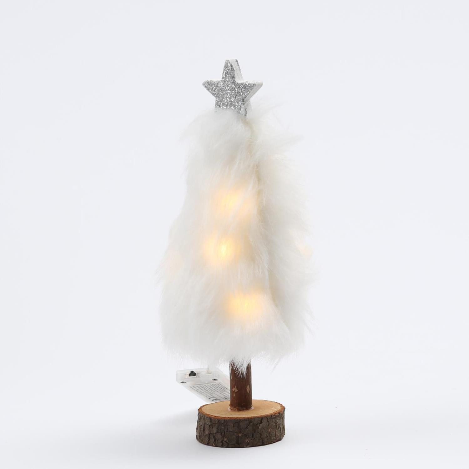 LED Dekobaum PLÜSCH mit Sternspitze - Plüschfell - 8 warmweiße LED - H: 19,5cm - Batterie - weiß