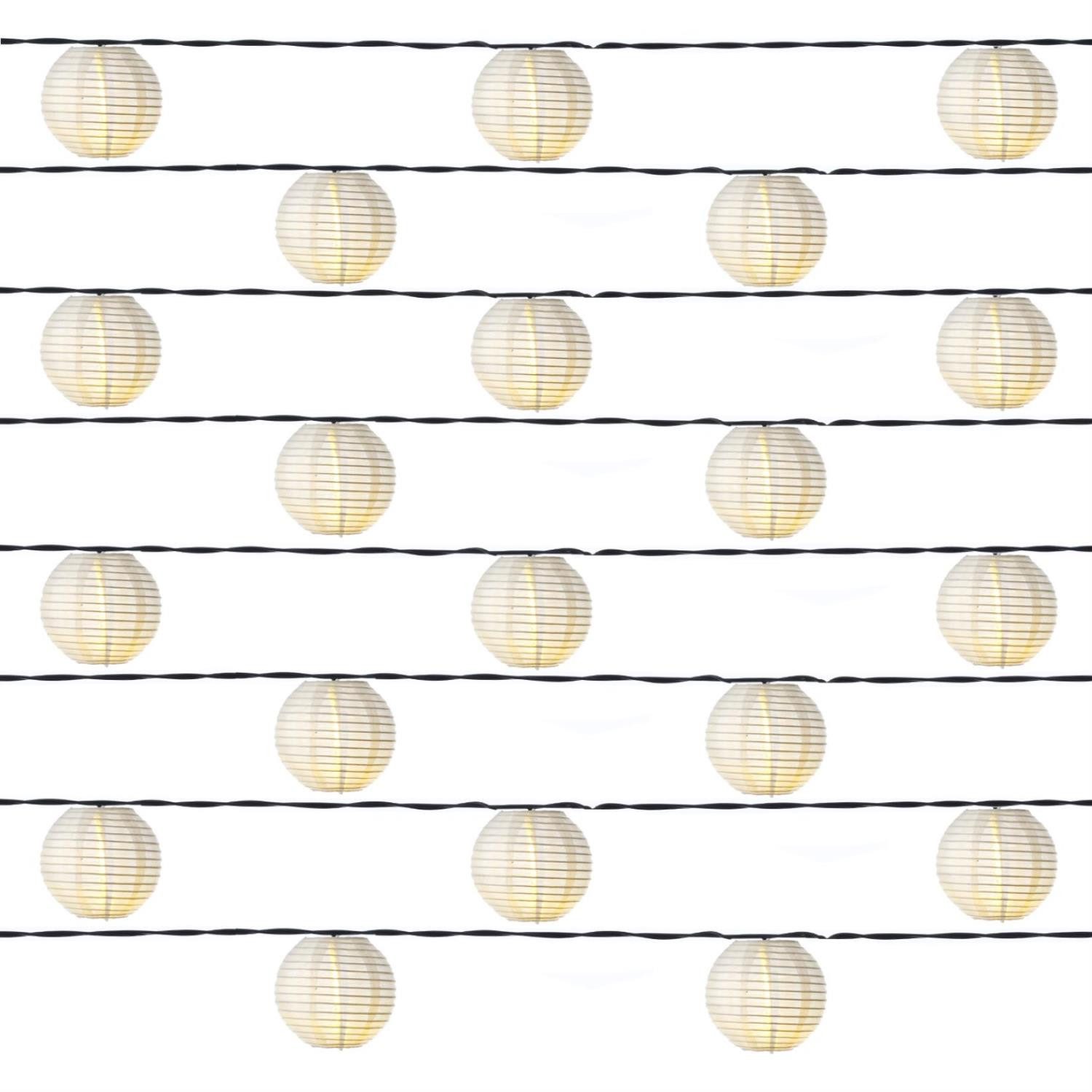 Diese LED Lichterkette mit den weißen Lampions ist eine ideale Dekoration für Deinen Garten oder die Terrasse. Auch auf dem Balkon oder in einem Baum sieht sie toll aus. Die 20 weißen Chinalampen leuchten durch die integrierte LED in warmweißem Licht.