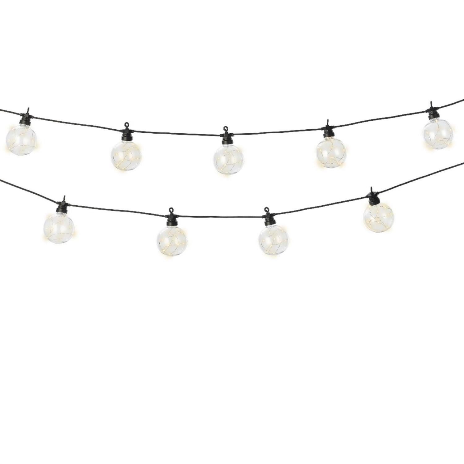 Diese außergewöhnliche Lichterkette hat eine ganz spezielle Erscheinung. In den 10 Kugeln aus wetterfestem Kunststoff sind jeweils kleine Drahtlichterketten mit je 10 Micro LED. Das ergibt in der Summe 100 kleine, warmweiße leichtende Lichtpunkte. Ein wunderschöner Anblick bei Dämmerung und Dunkelheit.