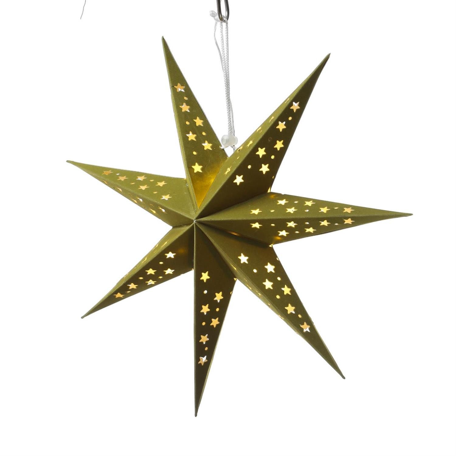 Ein fantastischer, aus Papier gefertigter Weihnachtsstern, der außergewöhnlich schön aussieht. Dieser Papierstern ist durch sein spezielles Papier etwas ganz besonders schönes. Auf den harten Papier ist eine Schicht grünen Samtstoff aufgebracht, was die Oberfläche sehr weich und natürlich wirken lässt. Durch das filigrane Loch-Muster mit Sternchenmuster leuchten die 10 warmweißen LED besonders schön und sorgen für eine bezaubernde Atmosphäre.